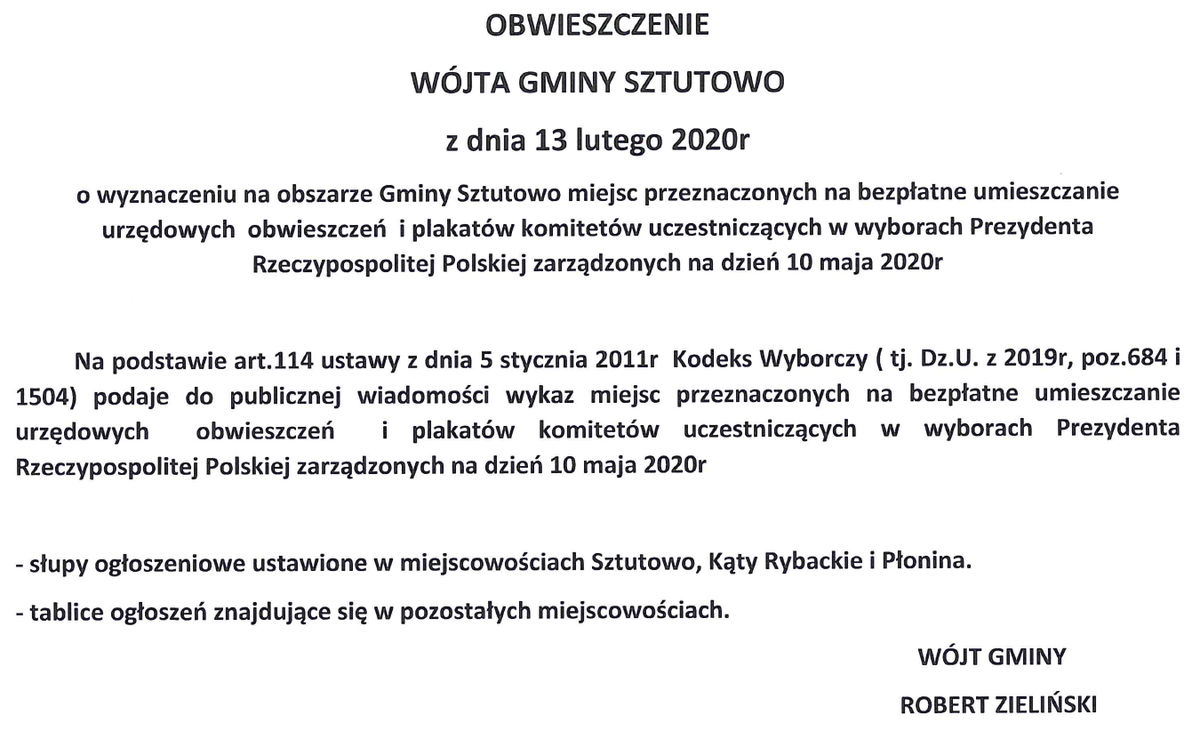 Strona główna » Aktualności » Obwieszczenie dot. wyborów prezydenckich Data dodania 13.02.2020 Obwieszczenie dot. wyborów prezydenckich Drukuj
