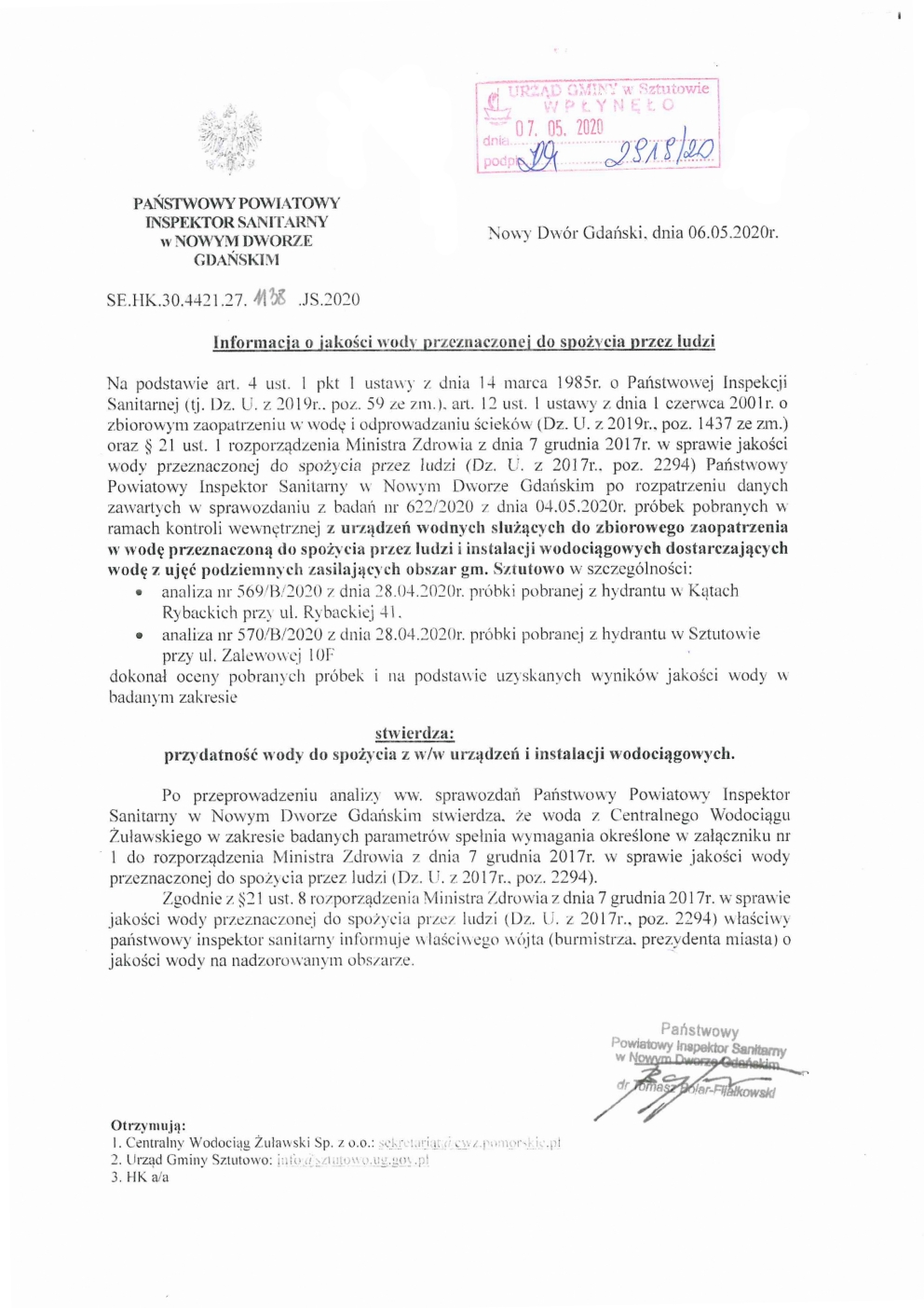 Strona główna » Aktualności » Ocena jakości wody CWŻ – 6.05.2020 Data dodania 08.05.2020 Ocena jakości wody CWŻ – 6.05.2020 Drukuj