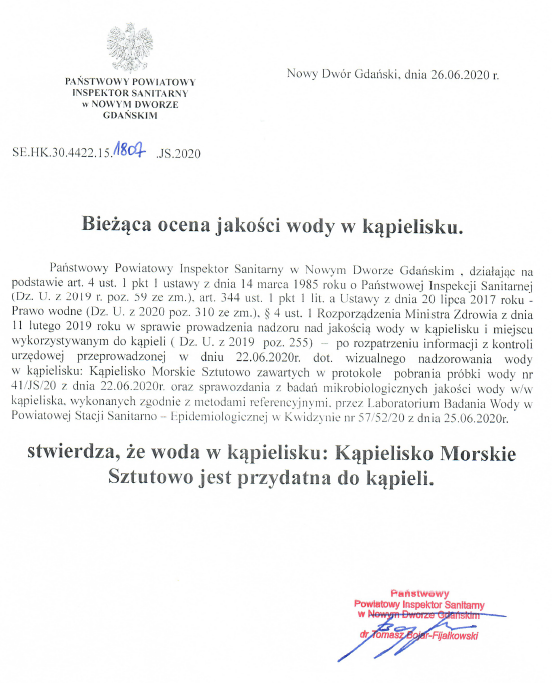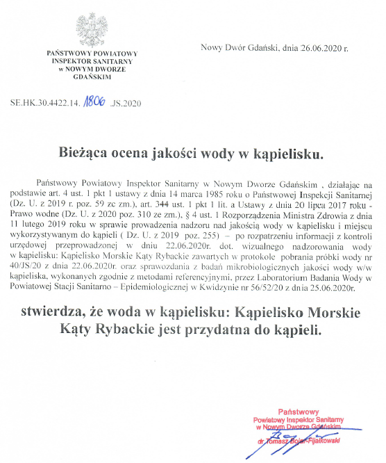Strona główna » Aktualności » Ocena wody w kąpieliskach – 26.06.2020 Data dodania 01.07.2020 Ocena wody w kąpieliskach – 26.06.2020 Drukuj
