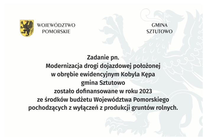 Dofinansowanie: 114 000 zł ze środków budżetu Województwa Pomorskiego związanych z wyłączaniem z produkcji gruntów rolnych.