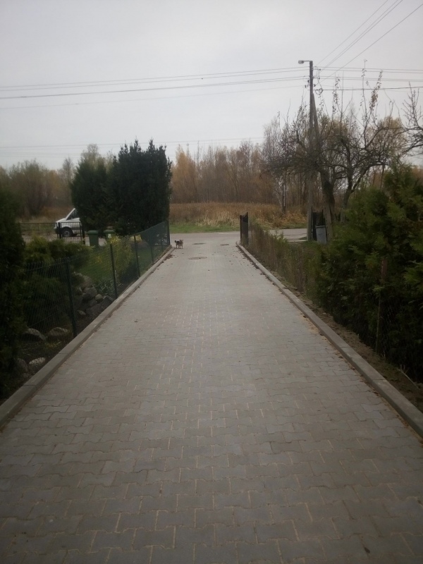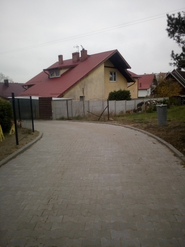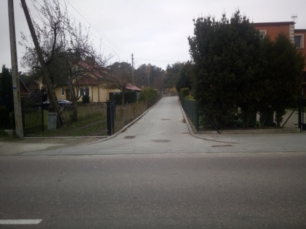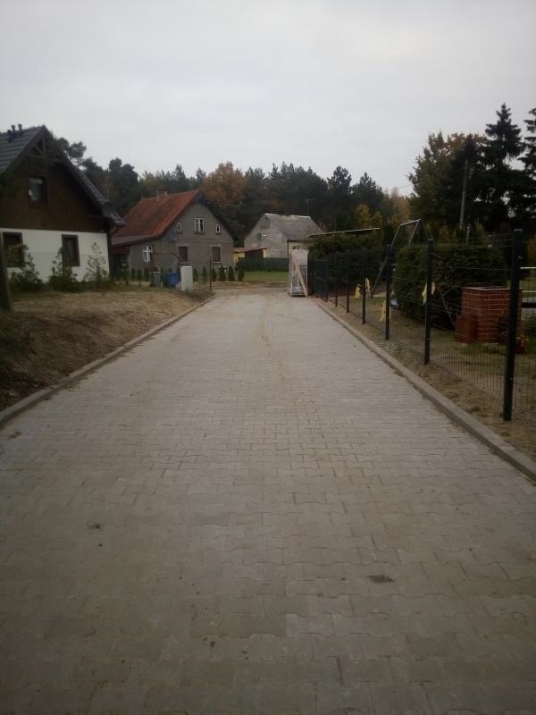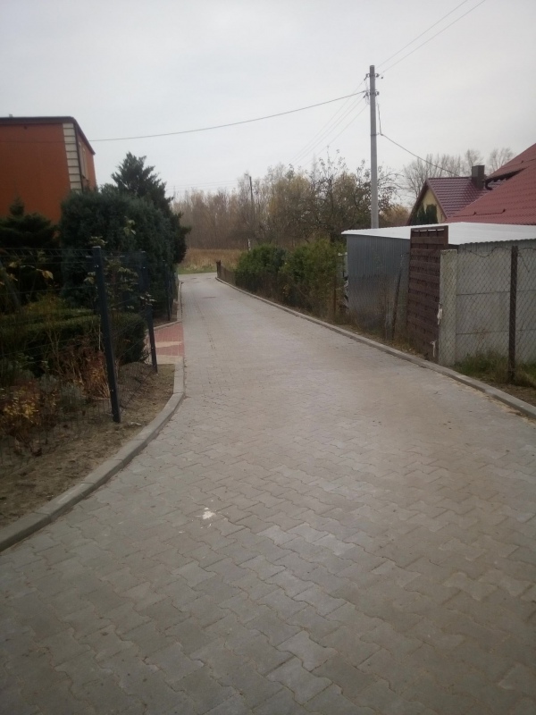 Wykonano nawierzchnię z betonowej kostki brukowej, zjazdy na posesje oraz odwodnienie drogi.