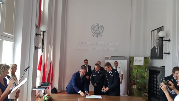 Wczorajszy dzień – 28 sierpnia – obfitował w miłe uroczystości. W siedzibie Wojewody Pomorskiego Dariusza Drelicha i w obecności Komendanta Wojewódzkiego Państwowej Straży Pożarnej nadbryg. Tomasza Komoszyńskiego odbyło się uroczyste podpisanie umów m.in. na dofinansowanie zakupu nowych samochodów ratowniczo-gaśniczych – w ramach Ogólnopolskiego programu finansowania służb ratowniczych. Umowy podpisali Maciej Kazienko, prezes Wojewódzkiego Funduszu Ochrony Środowiska i Gospodarki Wodnej w Gdańsku i przedstawiciele beneficjentów: 25 jednostek OSP z województwa pomorskiego, w tym OSP Sztutowo, które reprezentował Prezes Zarządu Andrzej Rozwadowski oraz Komendant Gminny ZOSP RP w Sztutowie Jacek Charliński. Kwota wsparcia dla naszego OSP to 380 tys. zł.