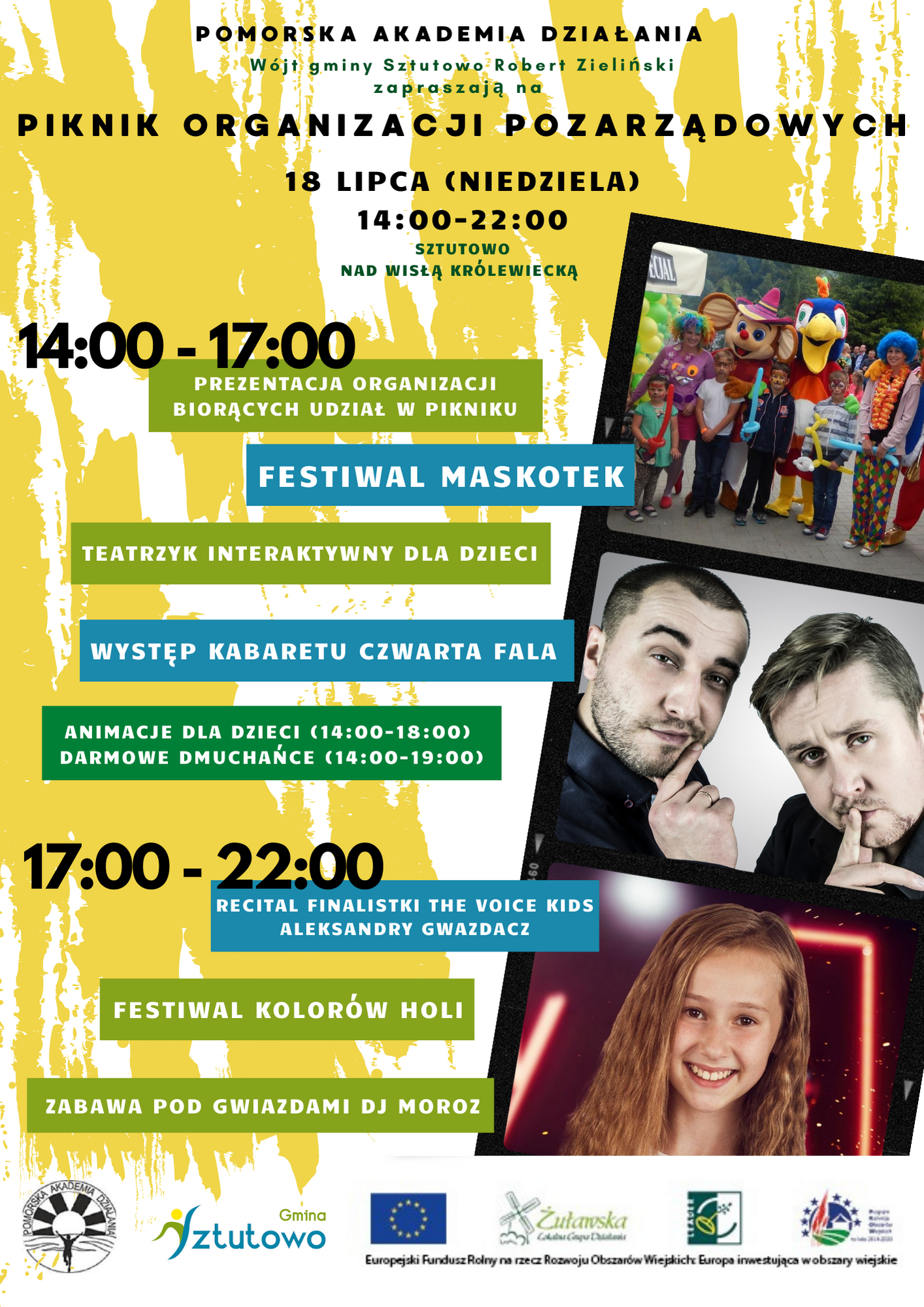 Pomorska Akademia Działania oraz Wójt Gminy Sztutowo Robert Zieliński zapraszają na Piknik Organizacji Pozarządowych, który odbędzie się nad Wisłą Królewiecką 18 lipca w godzinach 14:00-22:00.
