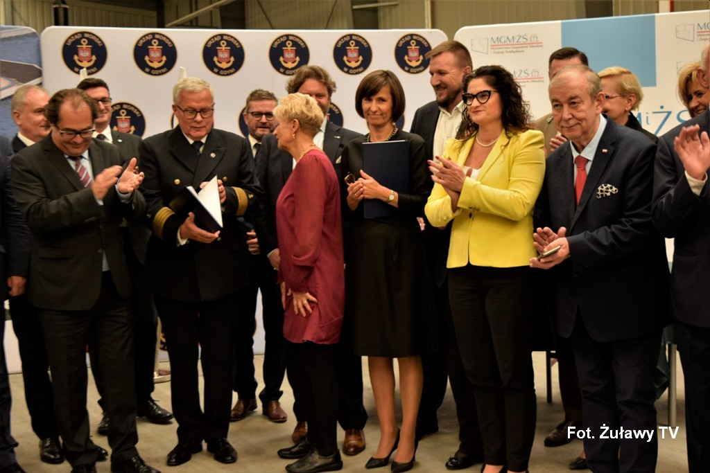 Podpisy pod umową złożyli dyrektor Urzędu Morskiego w Gdyni, kapitan żeglugi wielkiej Wiesław Piotrzkowski oraz przedstawiciele polsko-belgijskiego konsorcjum: prezes zarządu NDI SA Małgorzata Winiarek-Gajewska i dyrektor regionalny na Europę przedsiębiorstwa Besix Nic de Roeck. Stało się to w obecności m.in. ministra gospodarki morskiej i żeglugi śródlądowej Marka Gróbarczyka, wojewody pomorskiego Dariusza Drelicha, wojewody warmińsko-mazurskiego Artura Chojeckiego, prezydenta Elbląga Witolda Wróblewskiego, wójta Gminy Sztutowo Roberta Zielińskiego, prezesa Wód Polskich Przemysława Dacy oraz podsekretarzy stanu w Ministerstwie Gospodarki Morskiej i Żeglugi Śródlądowej Anny Moskwy i Grzegorza Witkowskiego.