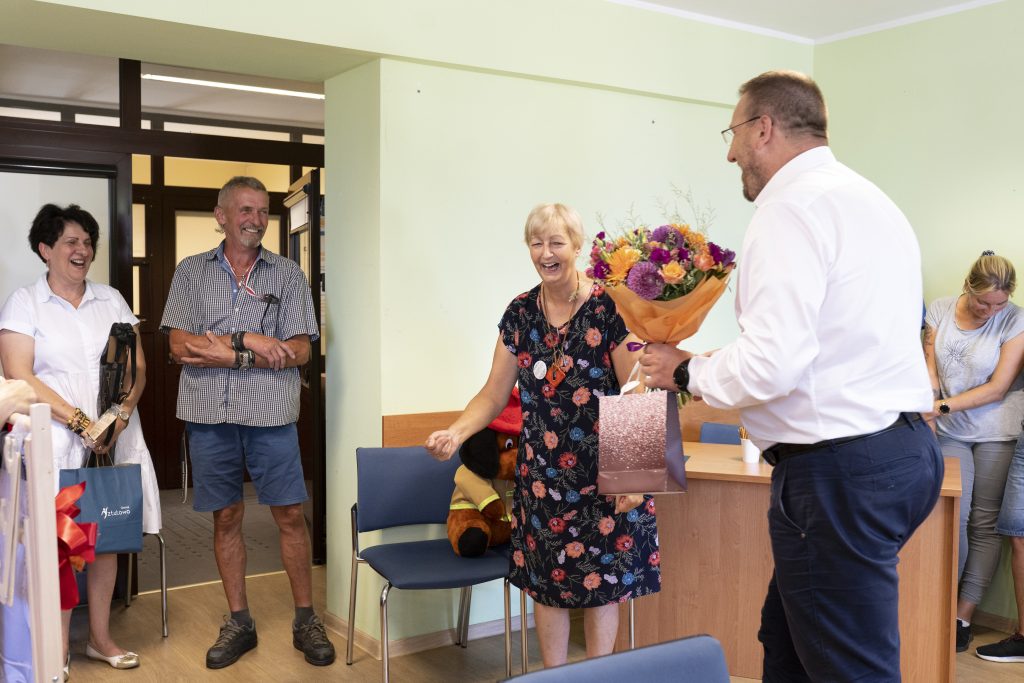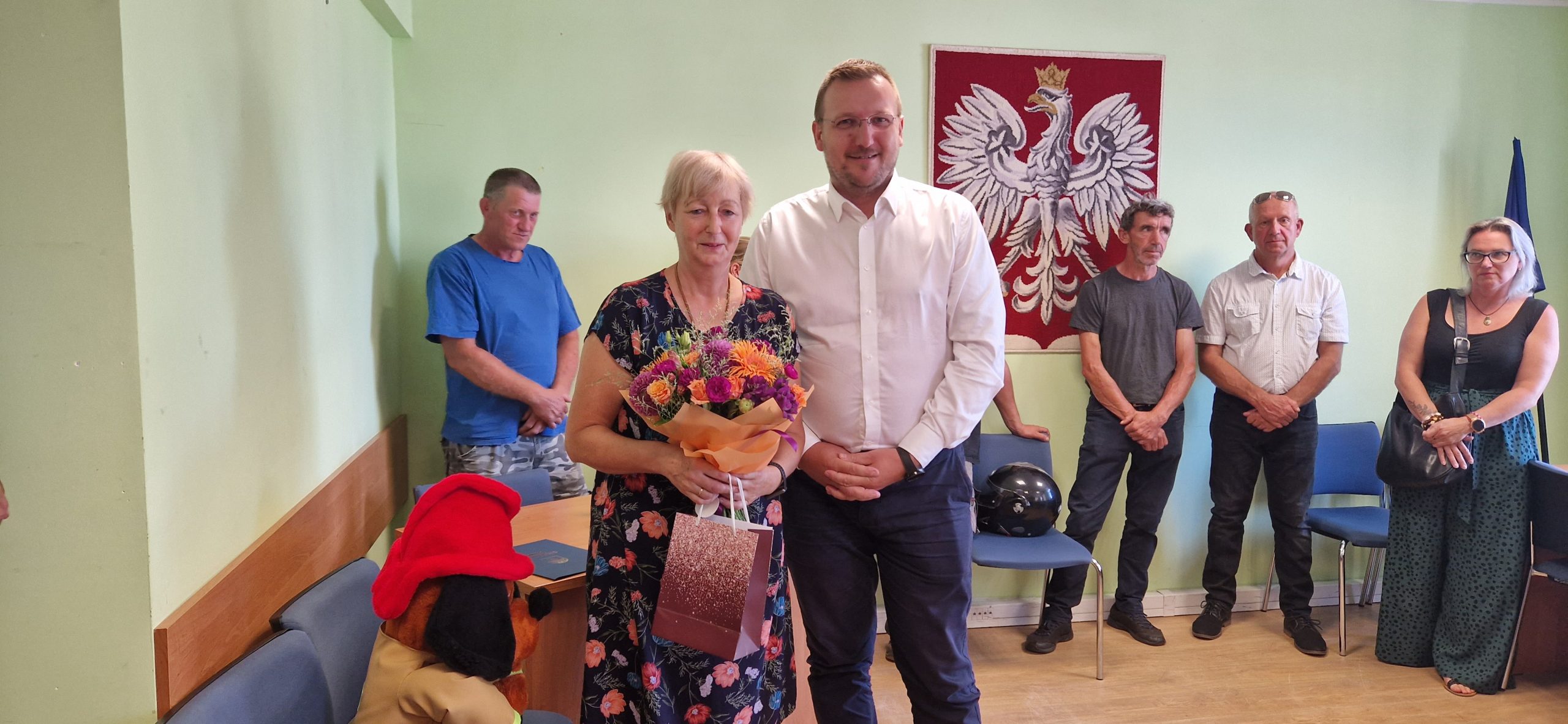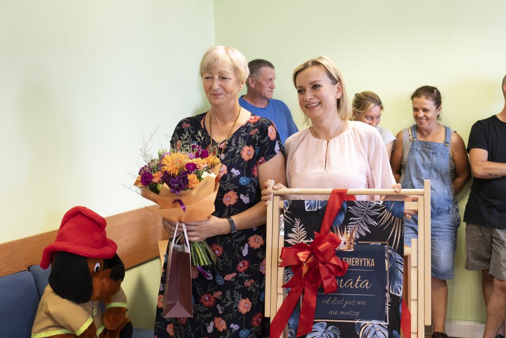 Urzędnicy na czele z Panem Wójtem, a także pracownicy jednostek podległych, dziękują za wiedzę, profesjonalizm, zaangażowanie oraz dobroć, które sprawiają, że nasz urząd jest wyjątkowym miejscem. Każdy z pracowników mógł liczyć na Pani radę, dobre słowo i pomoc. Podsumowując Pani karierę zawodową, chcielibyśmy aby Pani zapamiętała, że po tych wszystkich latach trudnej pracy, awansów, jubileuszy, sukcesów małych i dużych, chwil radosnych i smutnych, pozostaje wdzięczność wszystkich tych, którym pomagała Pani służąc swoją wiedzą i doświadczeniem. Przeżyła Pani wspólnie z naszym Urzędem wiele różnych momentów. Mamy za sobą wspaniałe czasy i trudne chwile. Zmieniały się strategie, koncepcje i cele. Dla Pani, niezależnie od tego, co działo się dookoła, zawsze najważniejsza była podstawowa zasada, a mianowicie rzetelność i uczciwość w pracy. Teraz przed Panią czas na urzeczywistnianie własnych pragnień i pasji. Wiemy, że ma Pani wiele planów i z całego serca życzymy, aby wszystkie udało się zrealizować.