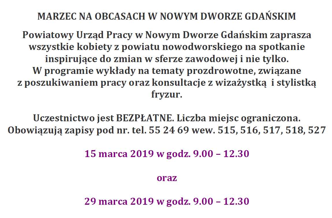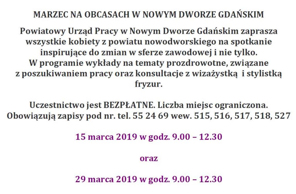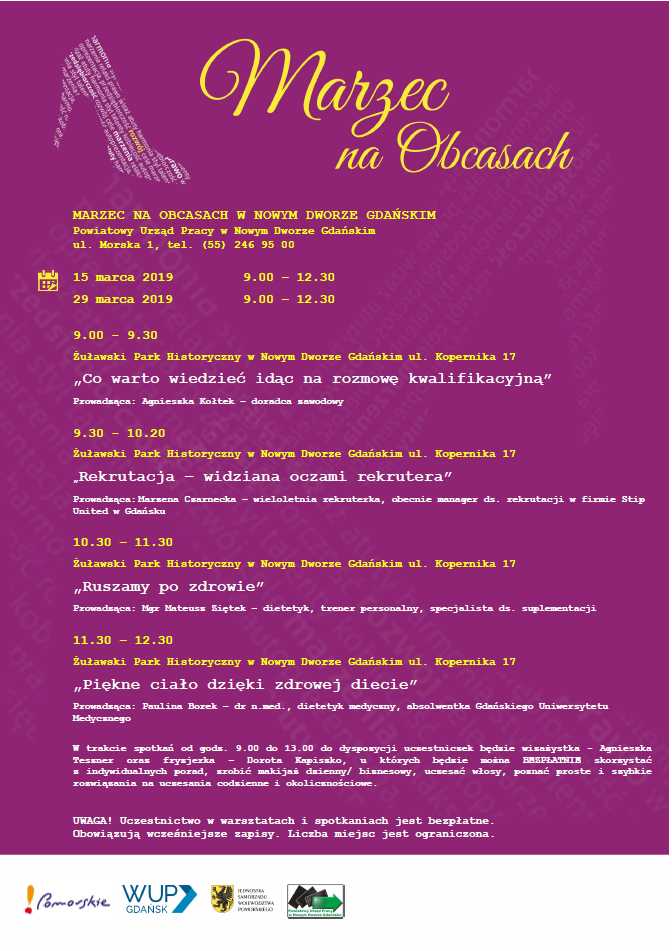 Strona główna » Aktualności » Powiatowy Urząd Pracy w Nowym Dworze Gdańskim zaprasza na „Marzec w obcasach” Data dodania 04.03.2019 Powiatowy Urząd Pracy w Nowym Dworze Gdańskim zaprasza na „Marzec w obcasach” Drukuj