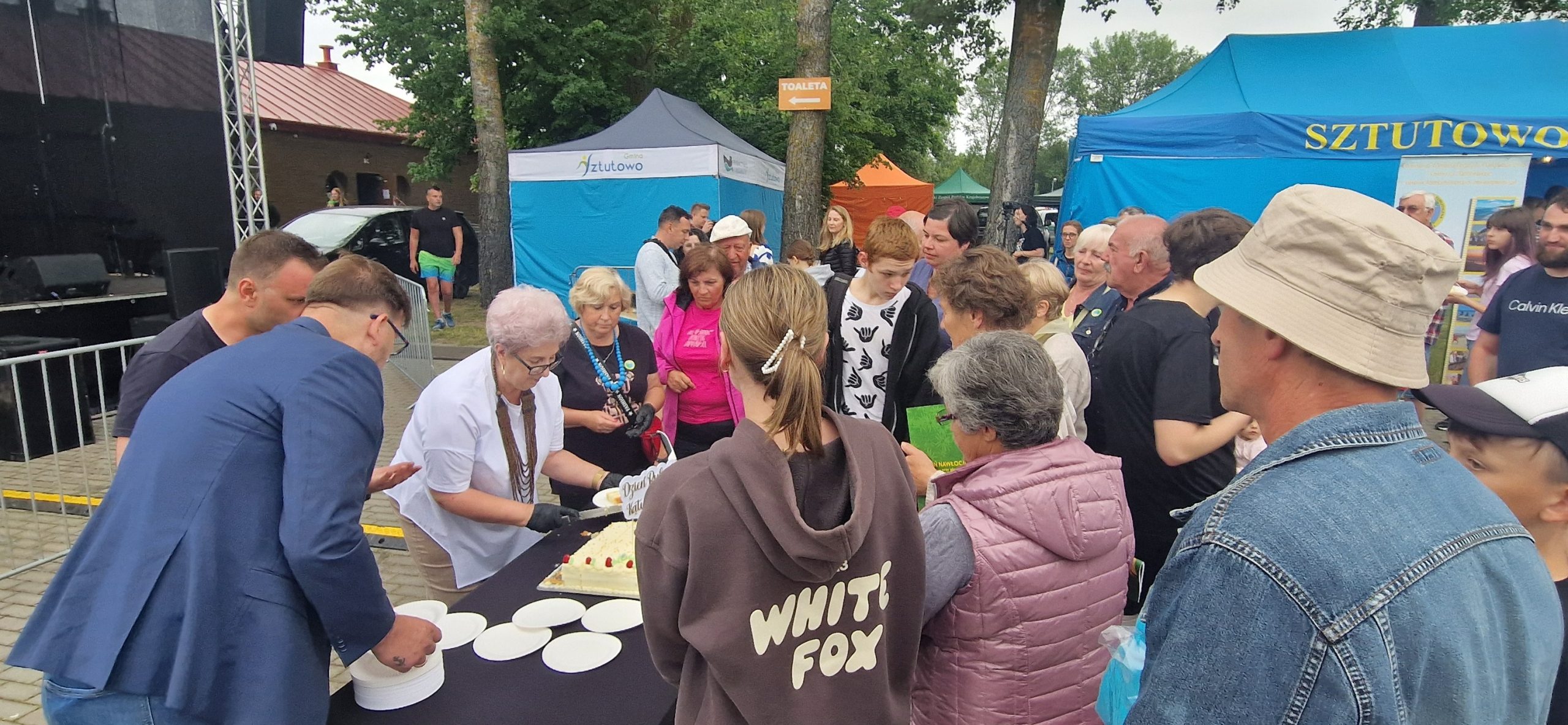 Następnie przyszedł czas na coś pysznego – okolicznościowy tort, przygotowany przez Panią Sołtys Elżbietę Adamowską. Mieszkańcy i goście mogli wspólnie celebrować ten dzień przy słodkim poczęstunku.