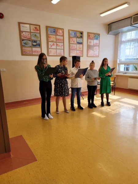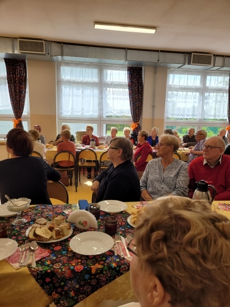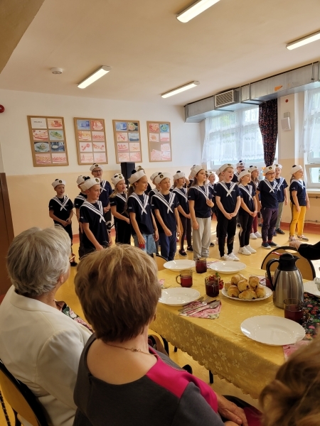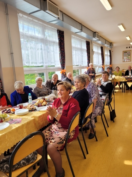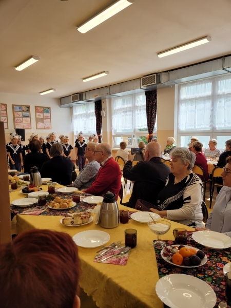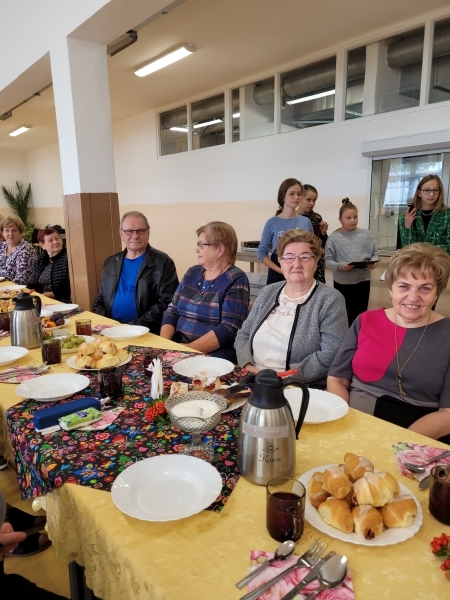 Był to wspaniały czas przeznaczony na rozmowy, wspomnienia, a także występy dzieci z naszej szkoły, które ubarwiły spotkanie. Energii do zabawy nie brakowało nikomu. Pięknie nakryte stoły, smakowite potrawy, dobra atmosfera sprzyjały radosnej i miłej atmosferze oraz dobremu nastrojowi wszystkich uczestników. Każdy z seniorów otrzymał kwiaty i życzenia od zaproszonych gości.