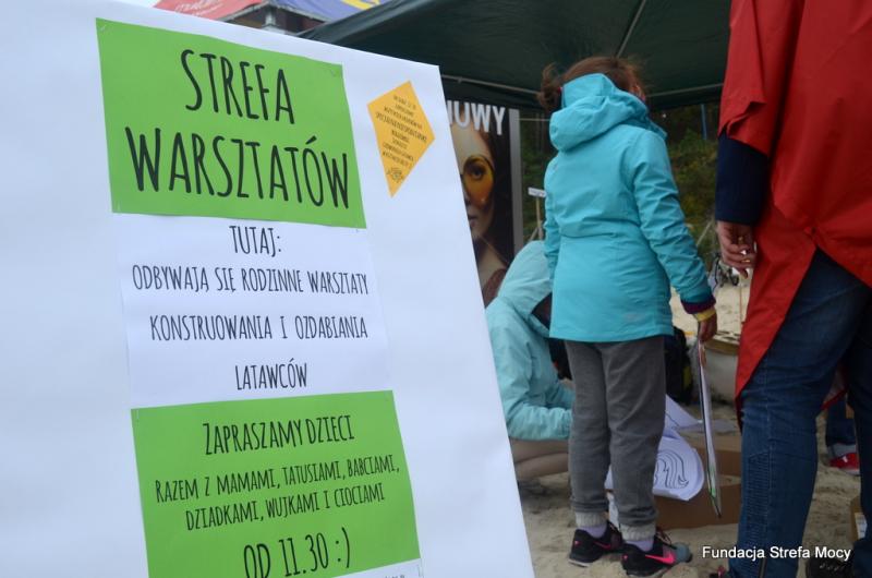 Najczęściej pojawiające się na latawcach motywy to popularne postacie z kreskówek. W tym roku królowały minionki. Uczestnicy imprezy mogli także skorzystać z innych atrakcji podzielonych na strefy. W strefie aktywności można było spróbować swoich sił z latawcami powerkite. Strefa kolorów to miejsce dla maluchów, gdzie wolontariuszki malowały buzie w latawcowe wzory, puszczały bańki, rozdawały baloniki i wiatraczki. W strefie gry odbyły się rodzinne turnieje gry w boule, w których można było wygrać atrakcyjne nagrody. Mimo kapryśnego wiatru odbyły się pokazy latawców, które zorganizowała ekipa BB Kite Buggy z Trójmiasta. Można było między innymi zobaczyć kilkunastometrowe turbinę i rotor leniwie obracające się nad plażą. Największą frajdę sprawiły dzieciom spadające z nieba cukierki. Dzięki specjalnemu mechanizmowi cukierki były podwieszone do linki latawca i po osiągnięciu odpowiedniej wysokości wypadały z torebki lądując na piasku. Wyścigi po latające słodkości wzbudzały dużo emocji, nawet wśród rodziców, którzy chętnie brali w nich udział. Organizator imprezy – Fundacja Strefa Mocy na kolejny weekend z latawcami zaprasza za rok, kiedy niebo nad Sztutowem i Kątami Rybackimi znowu zapełni się kolorami.