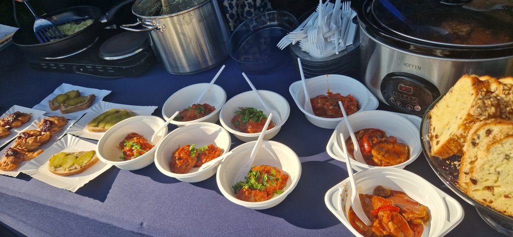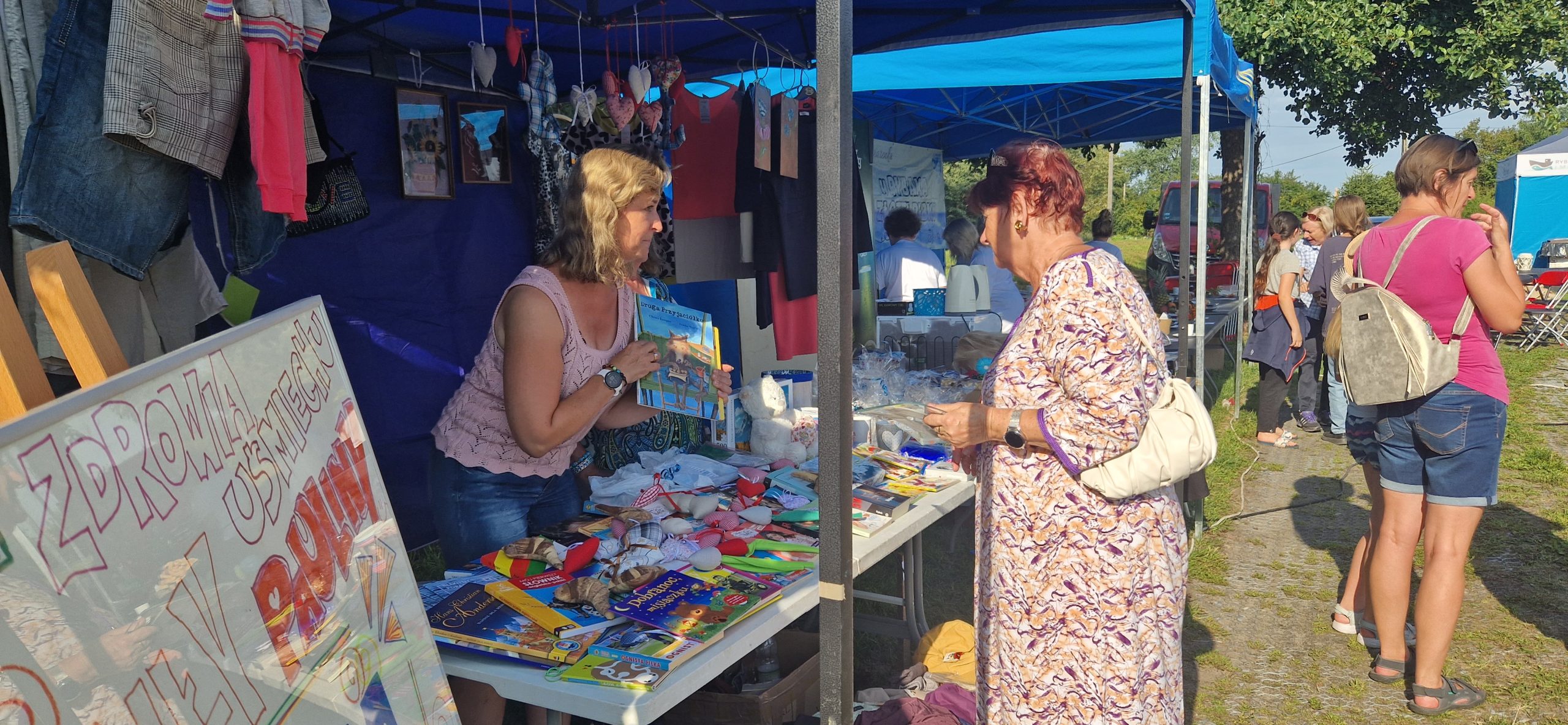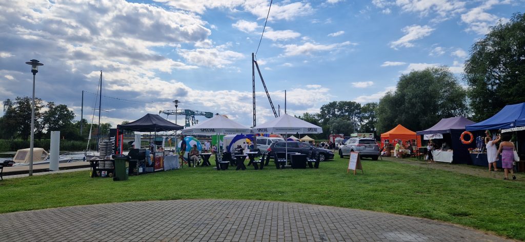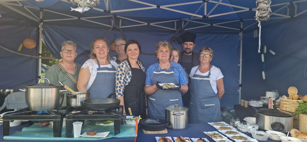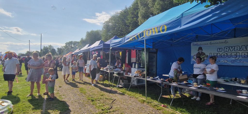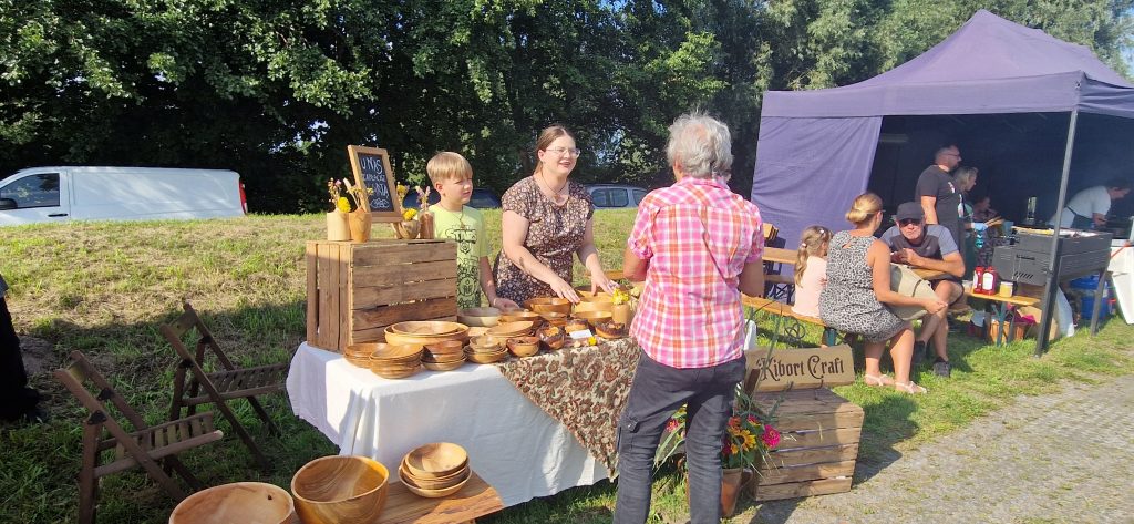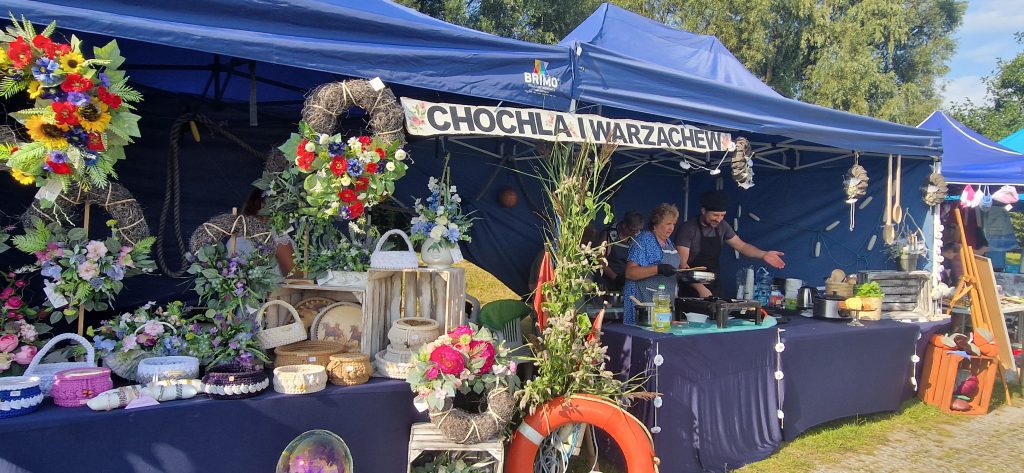 Wśród wystawców gościliśmy Panie z Biblioteki Publicznej Gminy Sztutowo, które doskonale znają nasz gust literacki, jednak tym razem postanowiły sprawdzić nasz gust kulinarny przygotowując pyszne ciasta kremowe, desery i gofry. Niezawodne Koło Gospodyń Wiejskich Chochla i Warząchew ze Sztutowa przygotowało również wiele wyśmienitych lokalnych potraw. Tu mogliśmy skosztować placków z cukinii, kremu z papryki, wegetariańskiego smalcu a także różnych słodkich wypieków. Poza degustacją potraw, panie prezentowały również swe rękodzieła. Kolejne wspaniale Koło Gospodyń Wiejskich Łaszkowianki z Łaszki zadbało o nasze żołądki, przyrządzając pyszne leczo, bigos oraz dania z grilla. Stoisko z loterką wystawiły mieszkanki naszej gminy, by tradycyjnie fundusze zebrane z fantów przekazać na rzecz mieszkanki Kątów Rybackich – Pauliny, która uległa ciężkiemu wypadkowi. Wśród naszych wystawców nie zabrakło też lokalnej firmy KIbort Craft, którzy tworzą niesamowite wyroby z drewna. Swe stoisko wystawiła również Pętla Żuławska, która tym razem także miała wiele atrakcji dla najmłodszych.