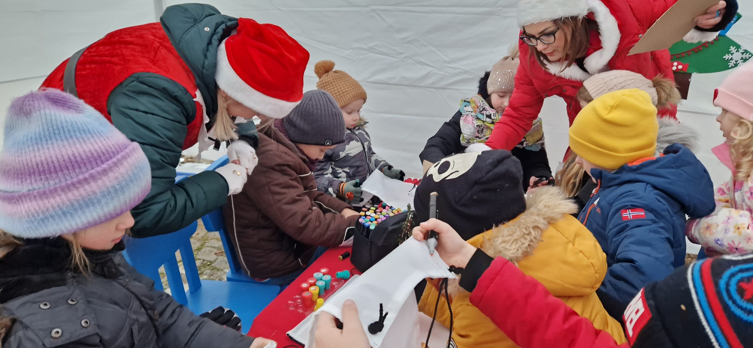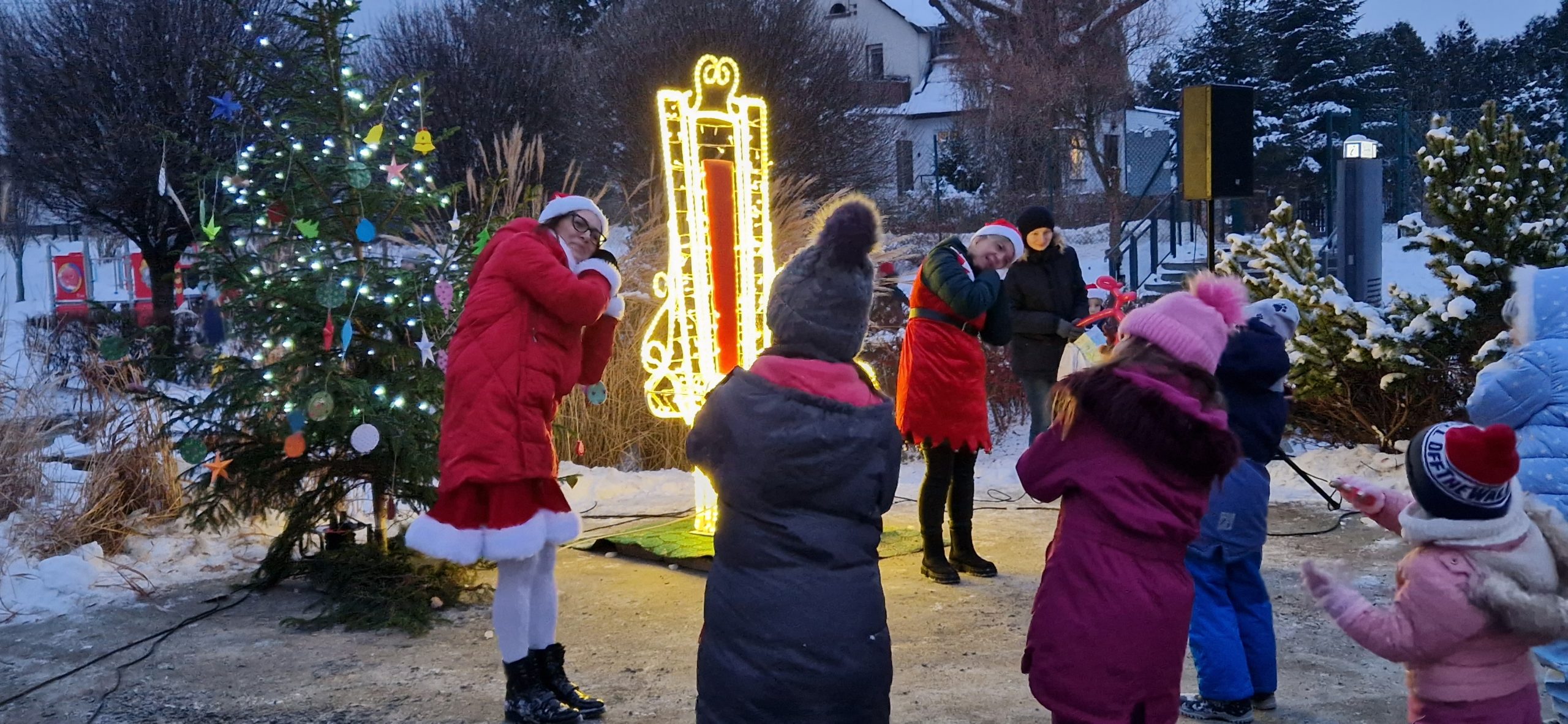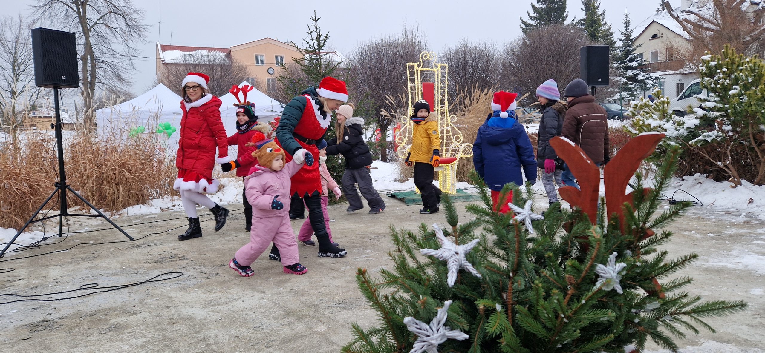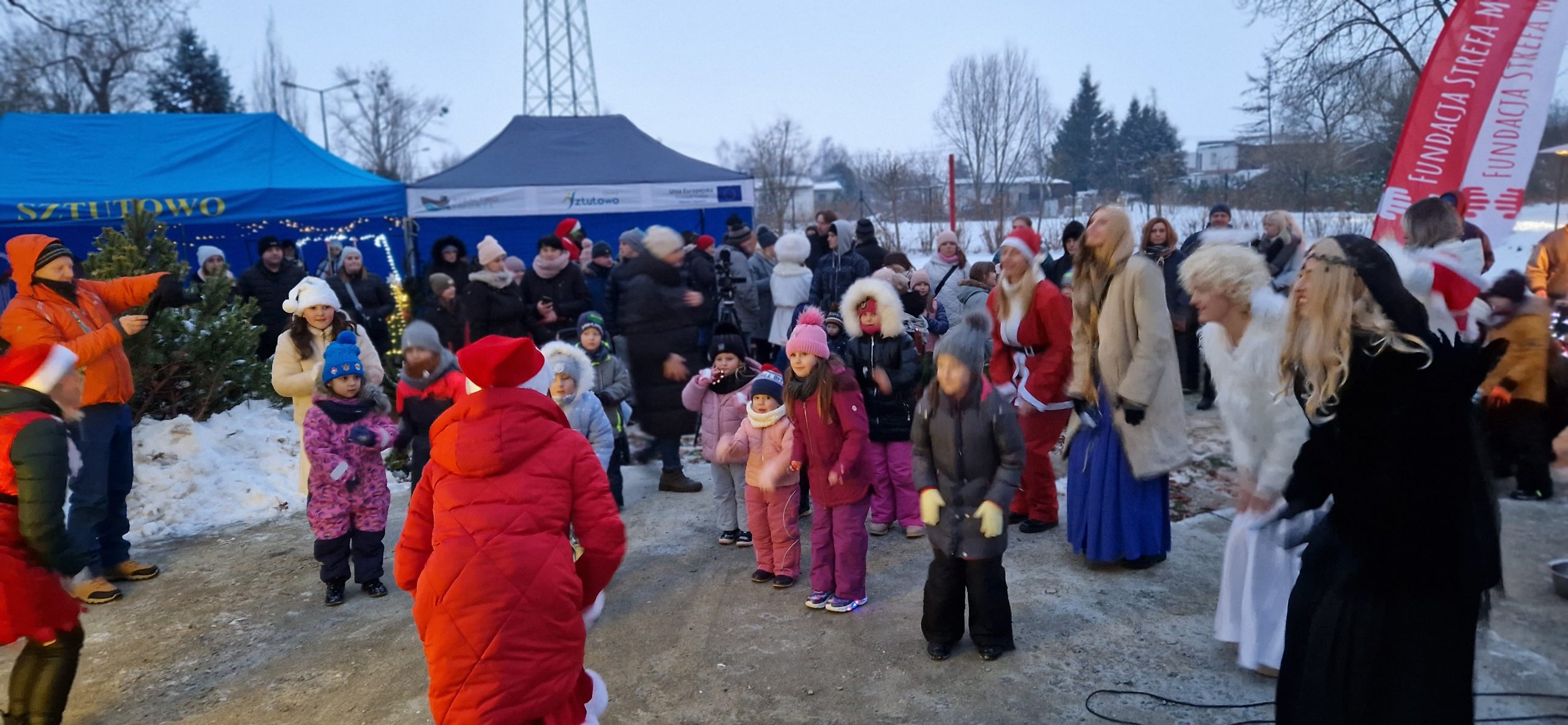 Przy dość mroźnej aurze pogodowej dzieci mogły rozgrzać się przy zajęciach ruchowo-tanecznych, bawić się z chustą animacyjną, angażując do niej również swych opiekunów. W specjalnie przygotowanej strefie dla najmłodszych na dzieci czekały różnego rodzaju warsztaty świąteczne, m.in.: dekorowanie pierników, tworzenie balonowej choinki oraz ozdób choinkowych, którymi przyozdobiono naszą sztutowską choinkę. A kto nie zdążył napisać jeszcze listu do Świętego Mikołaja, to miał taką możliwość.