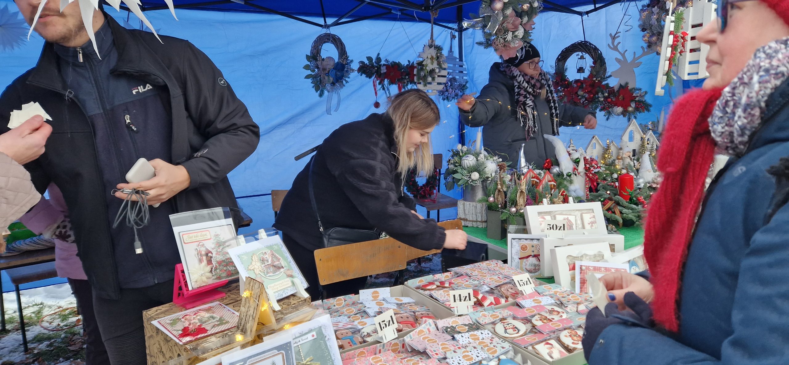 Pani Marzena Mazur, Pani Małgorzata Włoczkowska, Pani Bożena i Aleksandra Wyrzykowskie, Pani Maria Biruk, Panie Alina i Karolina Niedzielskie, Wianolki, Lukrusie ze swymi przecudownymi pierniczkami, sztutowski bursztynnik Dariusz Janowski z wyrobami z bursztynu -znany wszystkim jako Herkules, Kibort Craft z popisowymi misami z drewna i nie tylko. Była też z nami Fundacja Strefa Mocy z akcją charytatywną „Świąteczne Pomaganie”. Odwiedził nas także Człowiek z bursztynu – Tomasz Ołdziejewski- bohater serialu „Złoto Bałtyku” oraz nowej produkcji „Faceci ze Stali” z ekipą telewizyjną History TV, który promował nasze lokalne wyroby. Liczne zabawy animacyjne prowadziła dla nas Pani Mikołajowa z pomocnikiem elfem z firmy Fiku Miku Zabawa i Kawa Nowy Dwór Gdański.