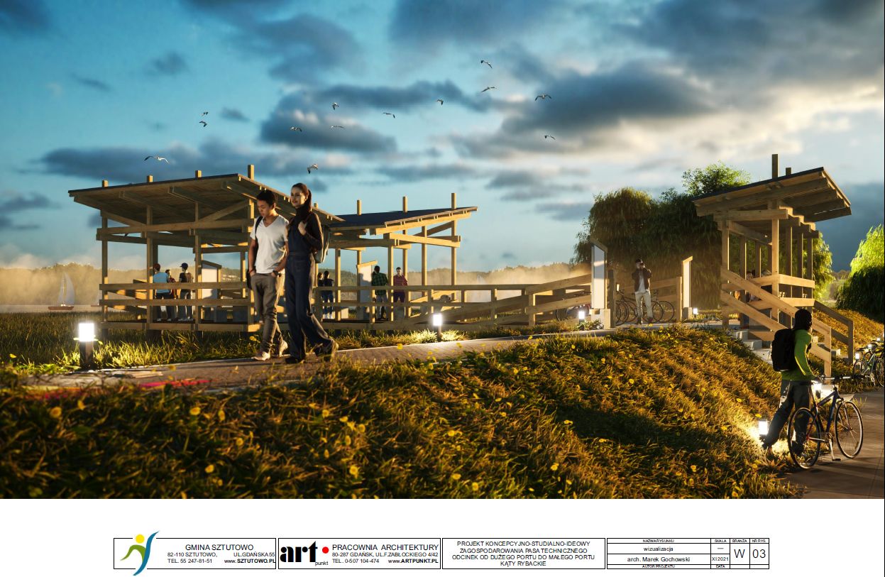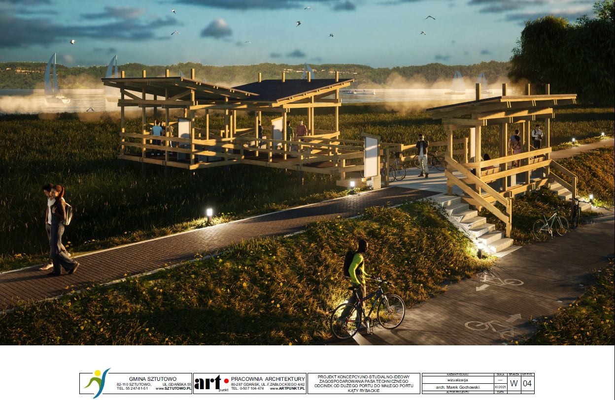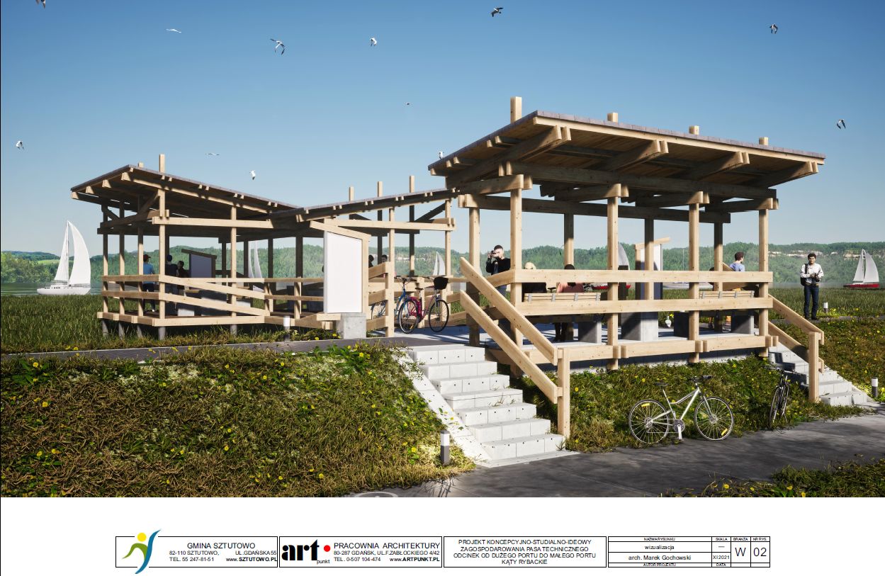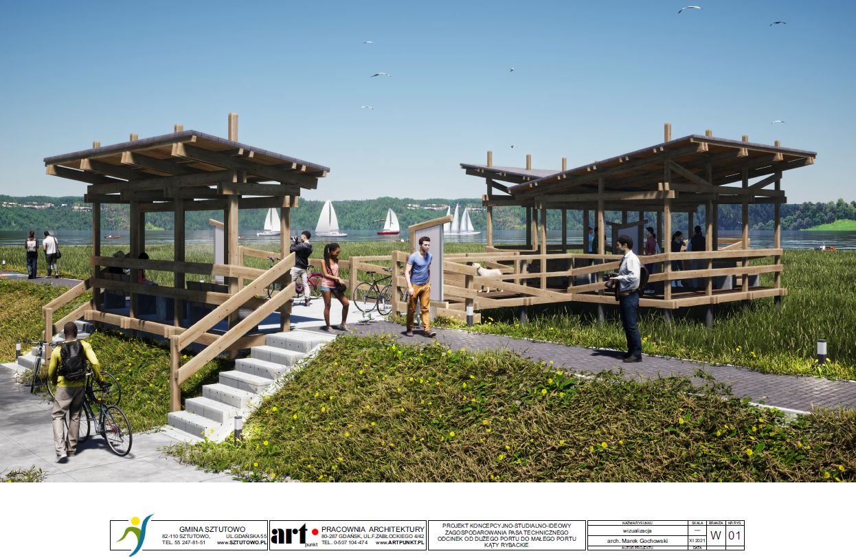 2) koncepcja zagospodarowania pasa technicznego na odcinku od dużego portu do małego portu w Kątach Rybackich.