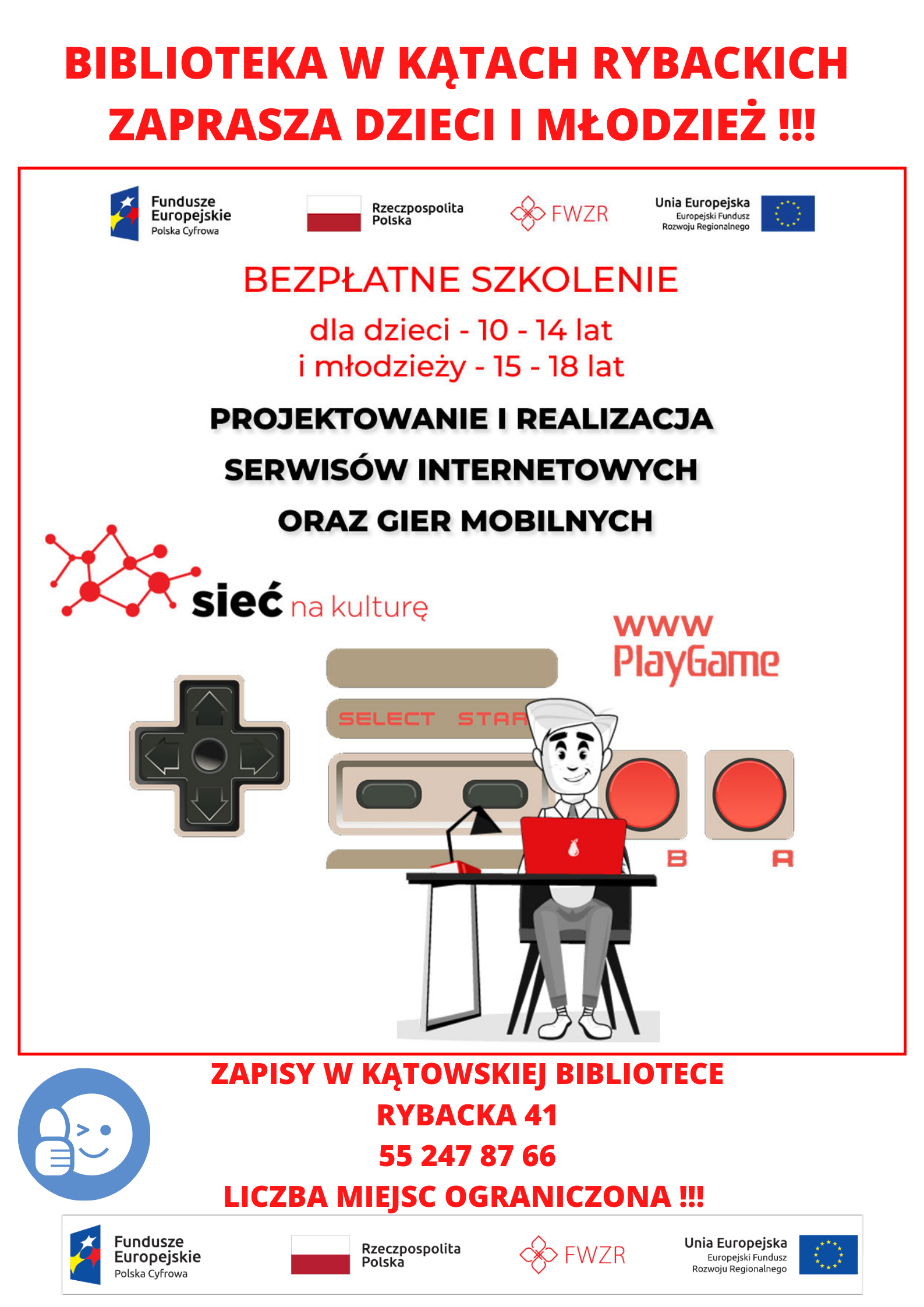 Biblioteka w Kątach Rybackich zaprasza dzieci i młodzież na bezpłatne szkolenie „Projektowanie i realizacja serwisów internetowych oraz gier mobilnych”.