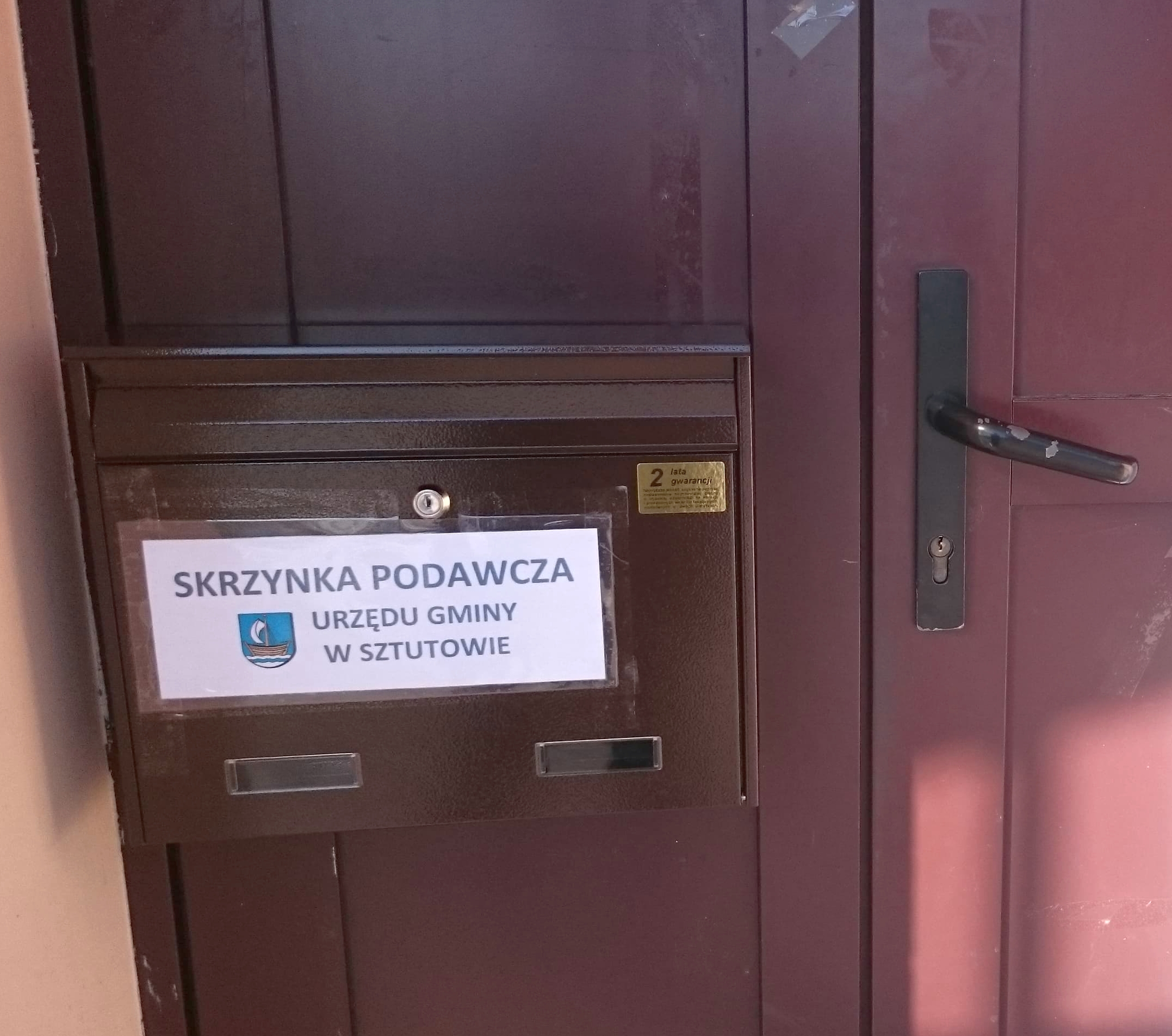 Wychodząc naprzeciw potrzebom, postanowiliśmy dać mieszkańcom możliwość składania pism kierowanych do Urzędu Gminy w Sztutowie do skrzynki podawczej, która została umieszczona przy wejściu do urzędu.