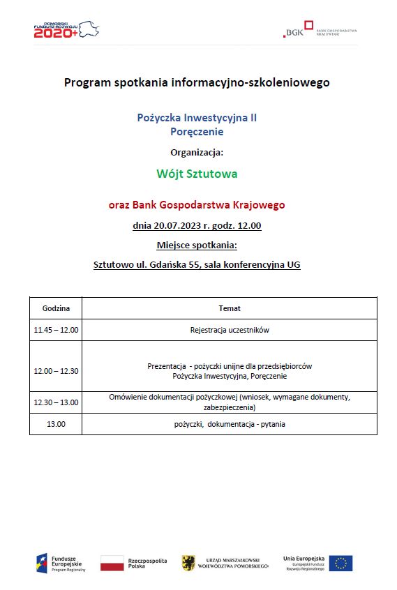 Udział w spotkaniach jest bezpłatny, a w zamian otrzymujesz praktyczną wiedzę na temat pożyczek unijnych – udzielanych na warunkach znacznie korzystniejszych niż rynkowe. Dzięki pomocy eksperta BGK, z łatwością zapoznasz się z całą potrzebną dokumentacją.