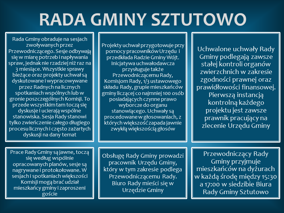 Strona główna » Aktualności » Struktura Urzędu Gminy w Sztutowie – część II Data dodania 31.01.2020 Struktura Urzędu Gminy w Sztutowie – część II Prezentujemy Państwu II część poradnika – kto za co w gminie odpowiada. Dziś kolej na Radę Gminy: Drukuj