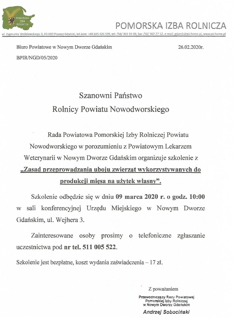 Strona główna » Aktualności » Szkolenie dla rolników – 9.03.2020 Data dodania 04.03.2020 Szkolenie dla rolników – 9.03.2020 Drukuj