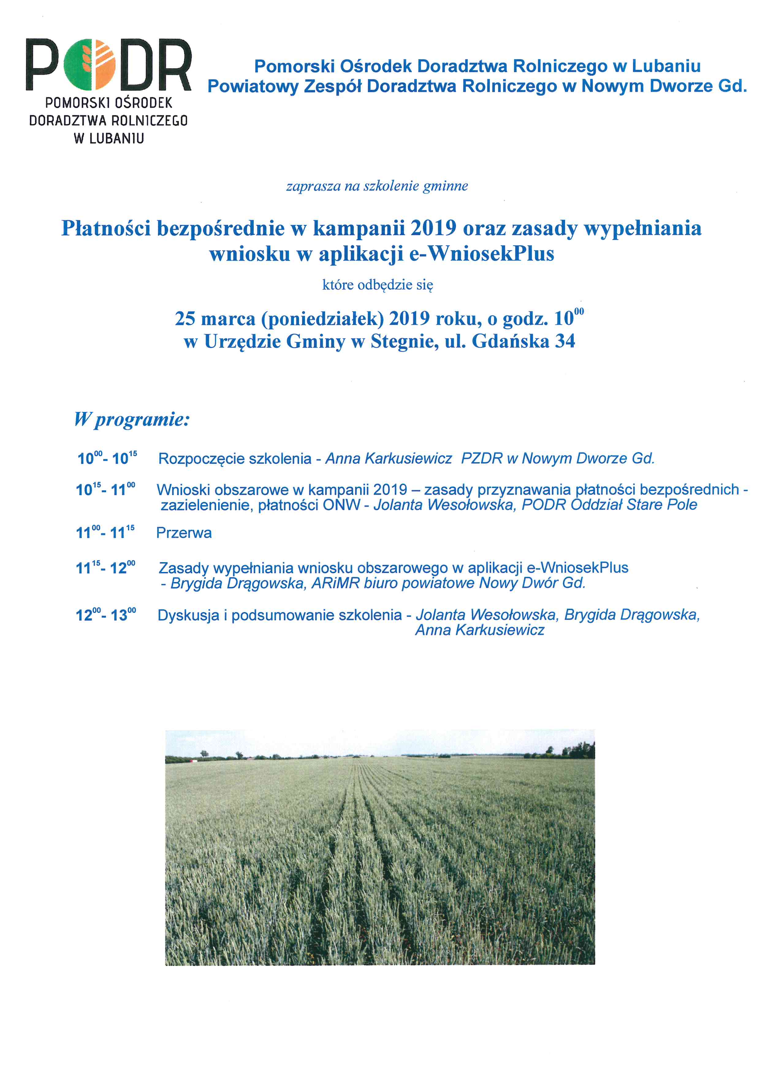 Strona główna » Aktualności » Szkolenie z płatności bezpośrednich, e-WniosekPlus – 25.03.2019 Data dodania 21.03.2019 Szkolenie z płatności bezpośrednich, e-WniosekPlus – 25.03.2019 Drukuj