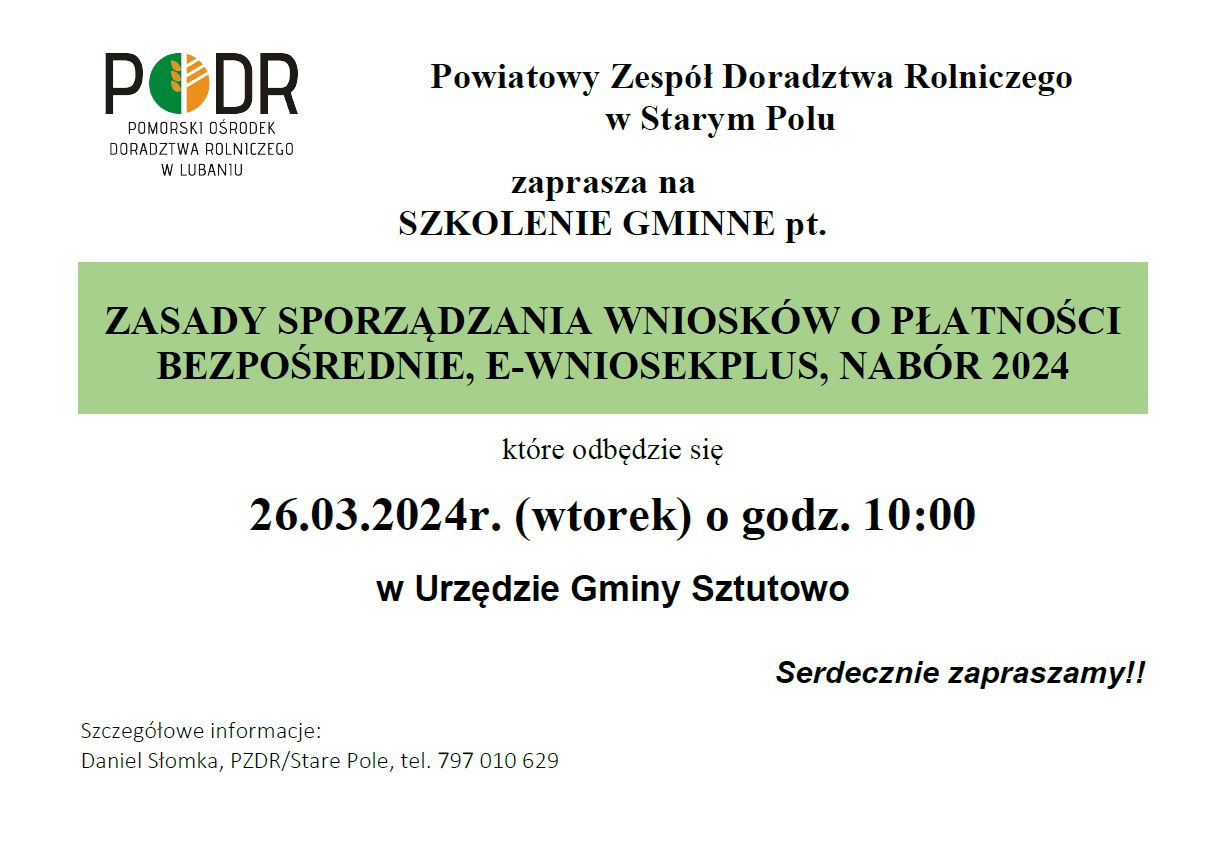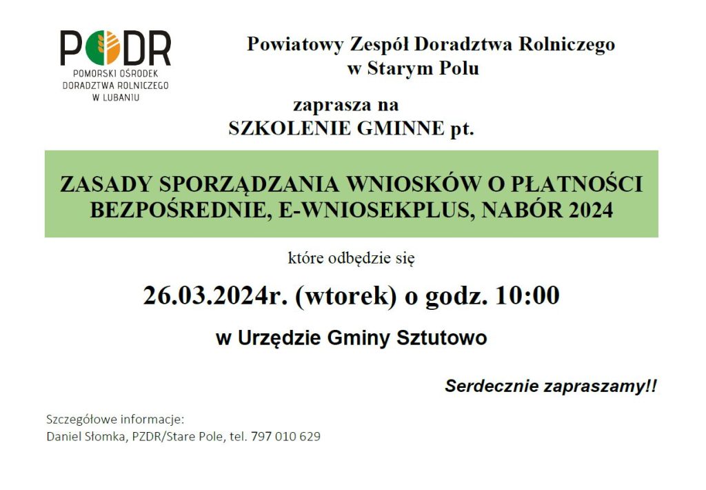 Strona główna » Aktualności » Szkolenie z zasad sporządzania wniosków o płatności bezpośrednie Data dodania 18.03.2024 Szkolenie z zasad sporządzania wniosków o płatności bezpośrednie Drukuj