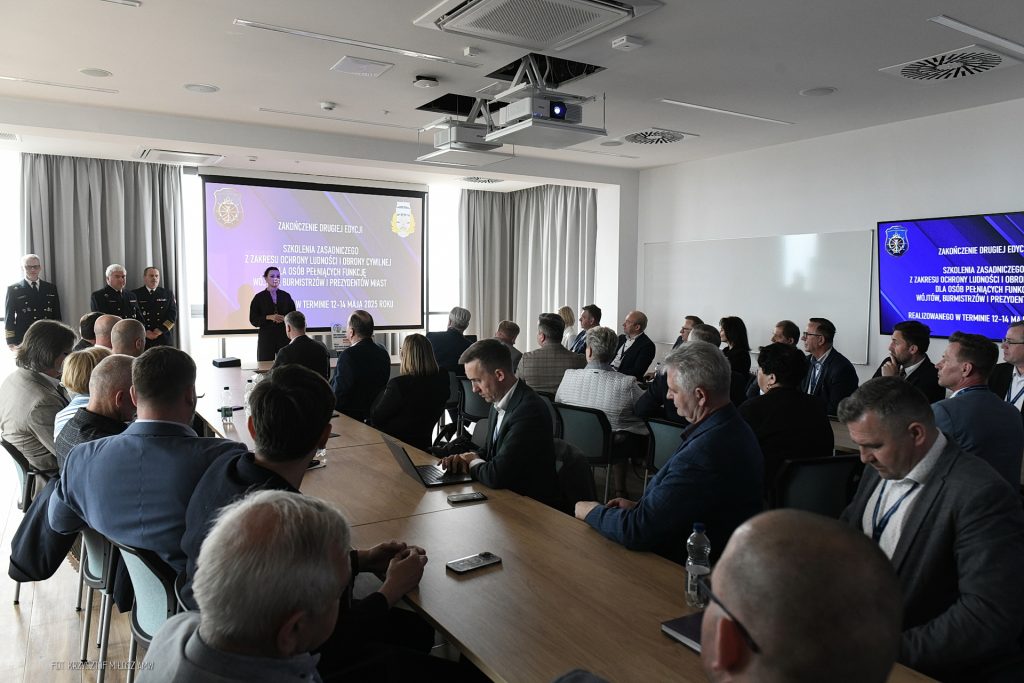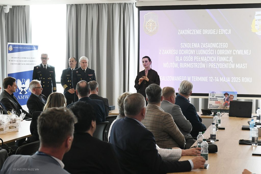 W dniach 12-14.05.2025 r. w Akademii Marynarki Wojennej w Gdyni odbyło się szkolenie zasadnicze z zakresu ochrony ludności i obrony cywilnej skierowane do osób zajmujących stanowiska wójtów, burmistrzów, prezydentów miast z Pomorza. Celem szkolenia było podniesienie wiedzy oraz kompetencji w zakresie przygotowania i reagowania na sytuacje kryzysowe.