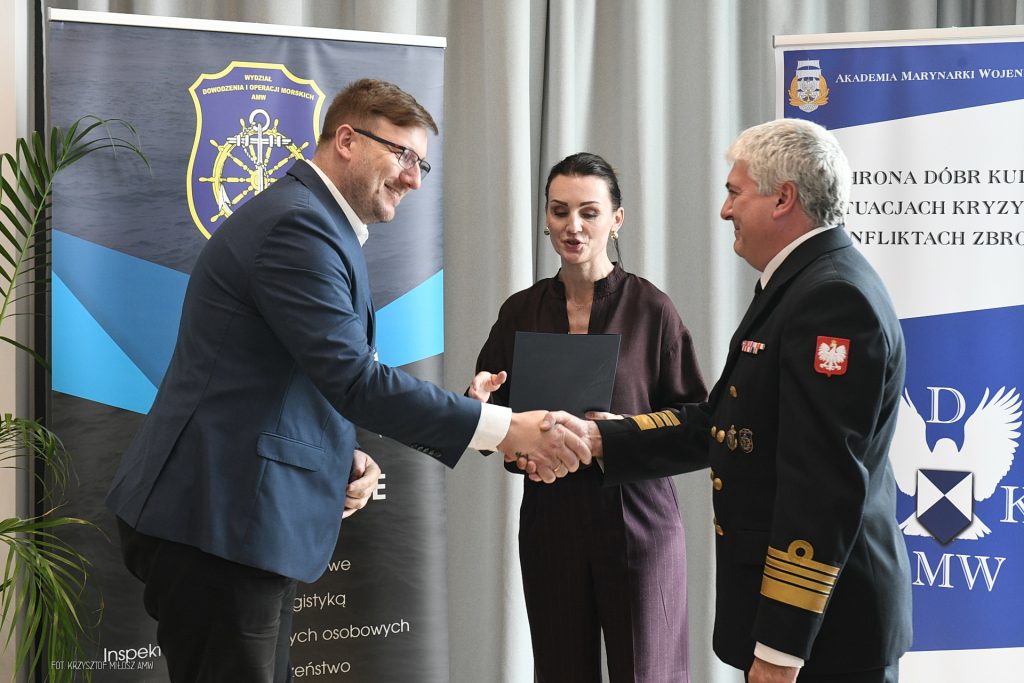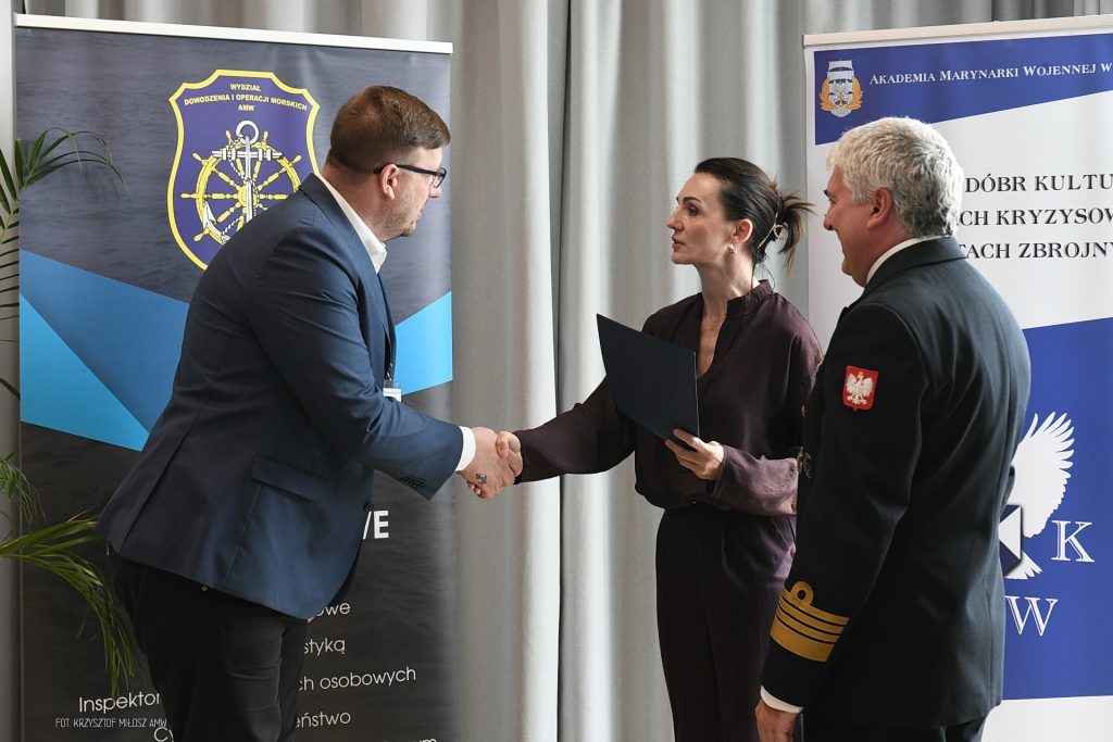 Po zakończeniu szkolenia Beata Rutkiewicz – Wojewoda Pomorska i dziekan wydziału dowodzenia i operacji morskich AMW kmdr dr hab. Wojciech Sokołowski, wręczyli uczestnikom kursu zaświadczenia o jego ukończeniu.