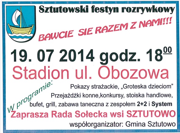 Strona główna » Aktualności » Sztutowski festyn rozrywkowy Data dodania 11.07.2014 Sztutowski festyn rozrywkowy Drukuj