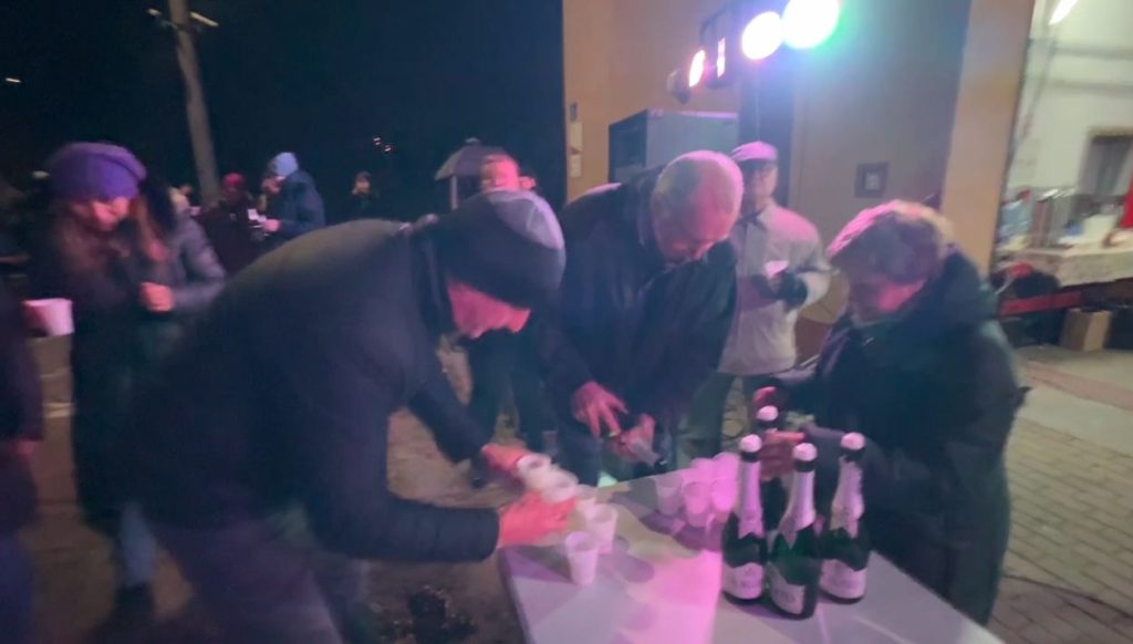 W Kątach Rybackich przy kameralnej atmosferze iskrzącego ogniska uczestnicy mogli liczyć na poczęstunek ciepłą kiełbaską oraz skosztować specjalnie przygotowanego przez sołtysa bigosu, a także kociołków z ciepłymi potrawami, zupy rybnej i zimnych przekąsek. Wzniesiono również toast lampką szampana, by wspólnie powitać Nowy Rok.