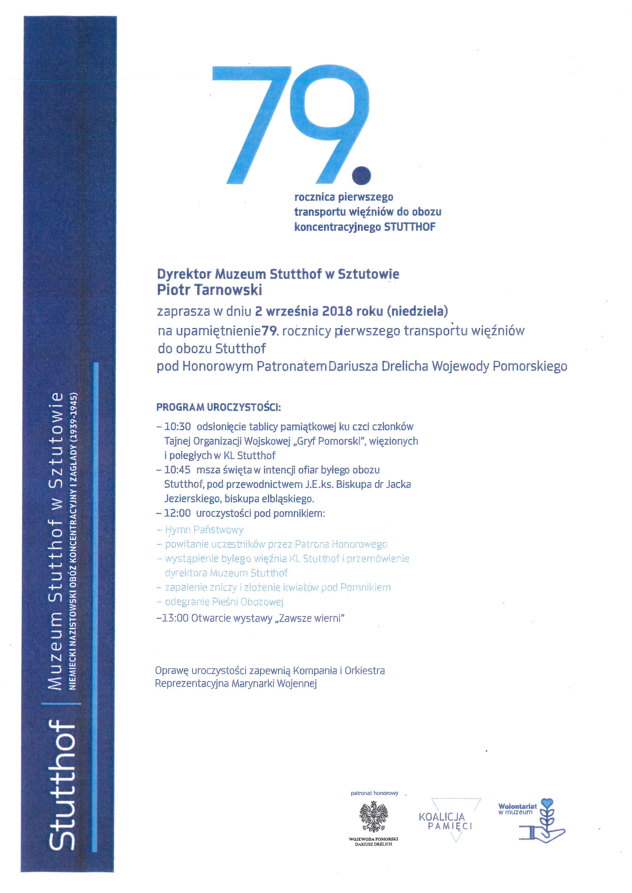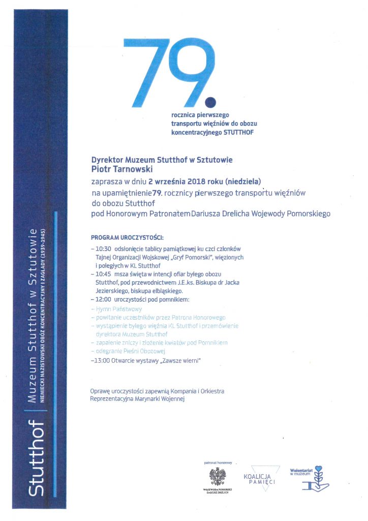 Strona główna » Aktualności » Uroczystości w Muzeum Stutthof Data dodania 31.08.2018 Uroczystości w Muzeum Stutthof Drukuj