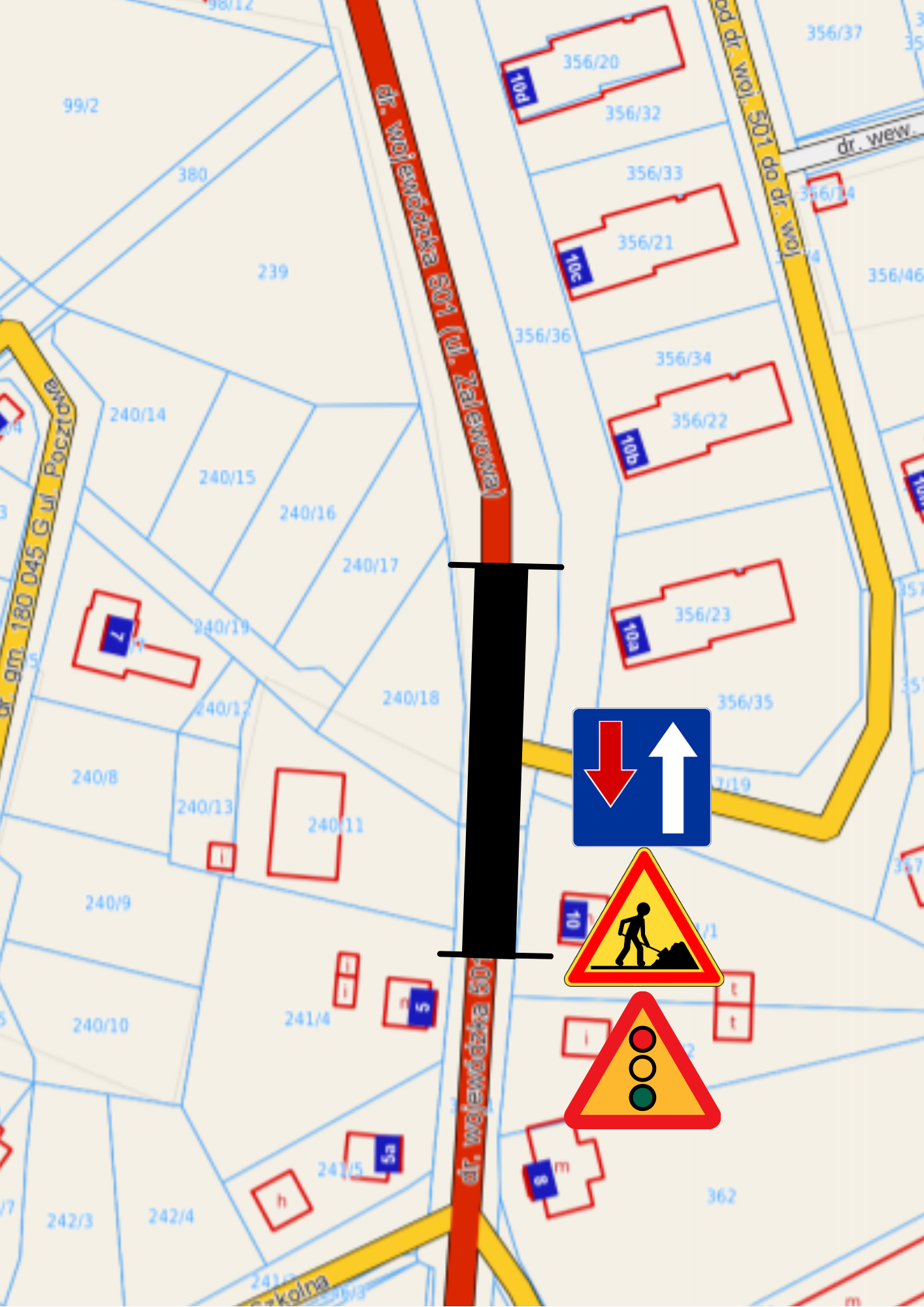 Uprzejmie informujemy, że na odcinku drogi wojewódzkiej nr 501 przy ul. Zalewowej w Sztutowie będą występowały utrudnienia w ruchu dotyczące przebudowy drogi z poszerzeniem, lewoskrętem i zjazdem na teren budowanego pawilonu handlowego. Wprowadzono ruch wahadłowy sterowany sygnalizacją świetlną. Odcinek drogi objęty utrudnieniami będzie ulegał zmianom organizacji w ruchu w zależności od postępu robót. Prosimy o zachowanie ostrożności na drodze.