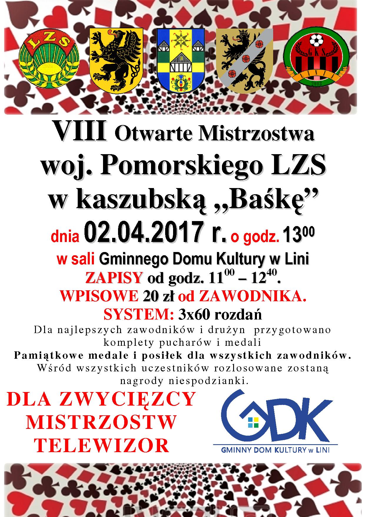 Strona główna » Aktualności » VIII Otwarte Mistrzostwa LZS woj. Pomorskiego w kaszubską „Baśkę” Data dodania 03.02.2017 VIII Otwarte Mistrzostwa LZS woj. Pomorskiego w kaszubską „Baśkę” Baska LZS regulamin2017 wojewódzka Drukuj