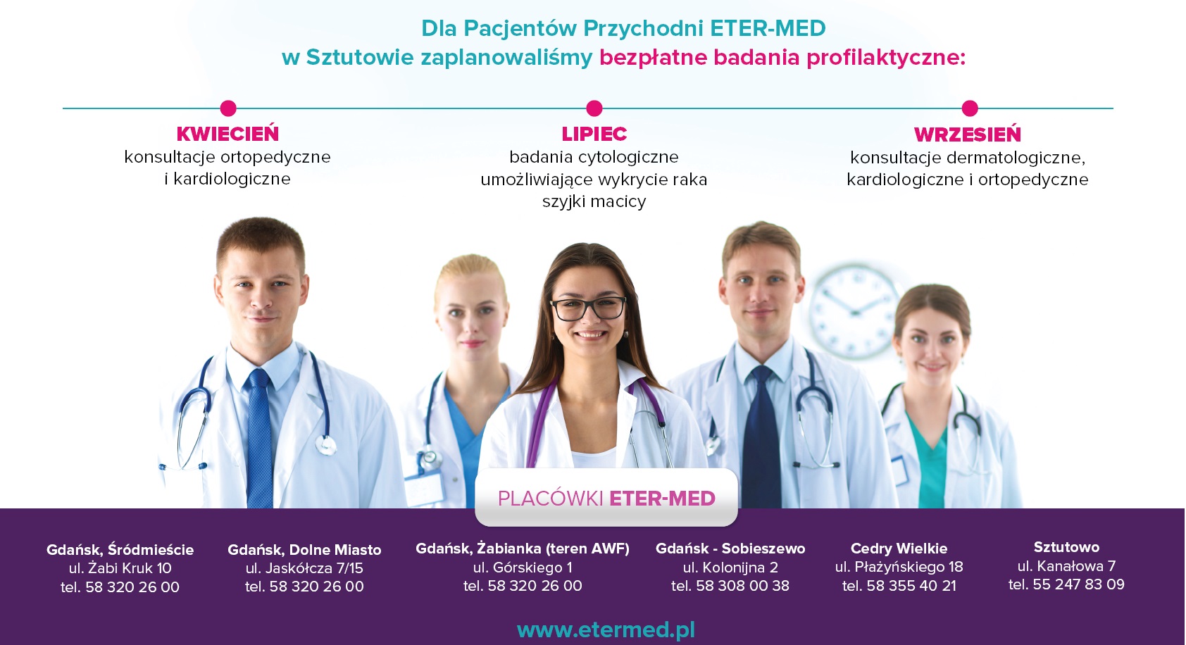 Dla Pacjentów Przychodni ETER-MED w Sztutowie są zaplanowane bezpłatne specjalistyczne konsultacje i badania profilaktyczne: