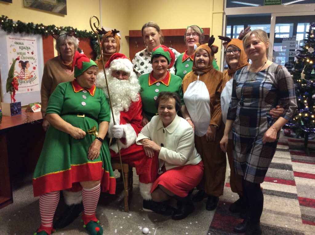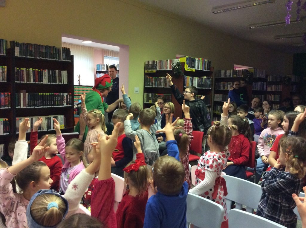 14 grudnia (sobota) bibliotekę słychać było z daleka. Pomiędzy regałami rozbrzmiewał głośny śmiech dzieci, grała muzyka, a tupot kopytek reniferków był lekko słyszalny. W bibliotece odbyło się spotkanie młodych uczestników projektu „Mała książka – wielki człowiek”, dzieci i młodzieży z Dyskusyjnych Klubów Książki z najprawdziwszym Mikołajem.