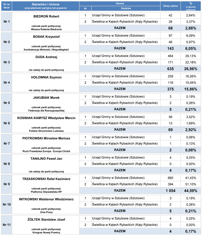 Prezentujemy wyniki wyborów prezydenckich w naszej gminie.