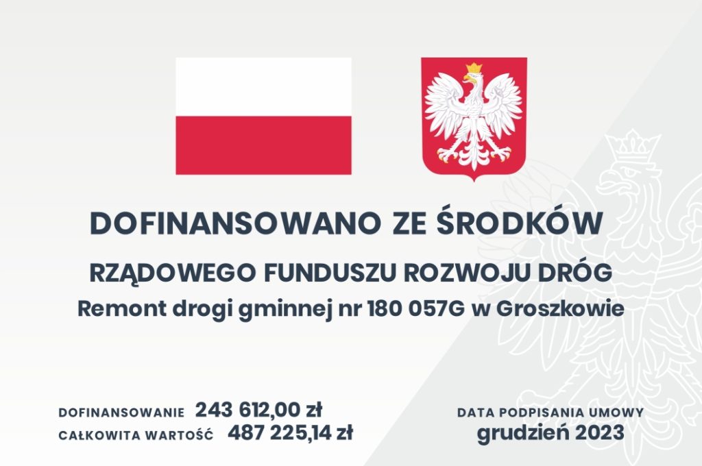 Inwestycję dofinansowano ze środków Rządowego Funduszu Rozwoju Dróg – zadania remontowe.