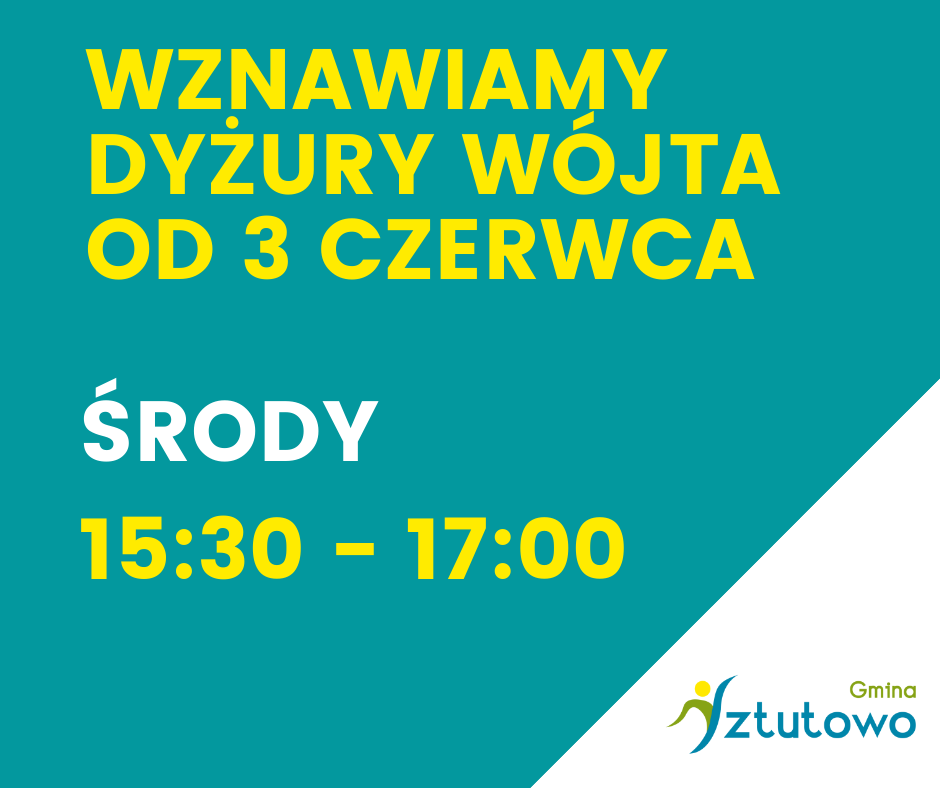 Po długiej przerwie związanej z epidemią COVID-19 wracamy od dziś do dyżurów Wójta. Zapraszam w każdą środę od 15:30 do 17:00. Główne wejście do Urzędu Gminy – będę czekał na mieszkańców w miejscu, w którym teraz pełnione są dyżury pracowników.