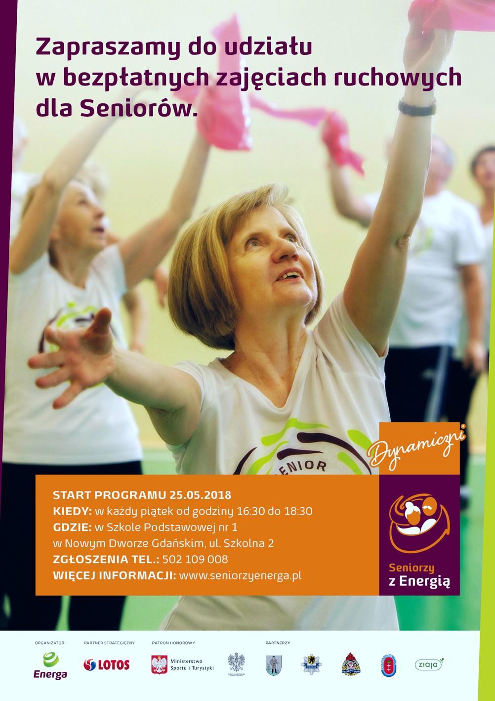 25 maja 2018 roku rusza kolejna edycja programu dla Seniorów, tym razem pod nazwą „Dynamiczni Seniorzy z Energią”, w ramach którego planowanych jest 5 tygodni zajęć ruchowych wiosną, 10 tygodni zajęć ruchowych jesienią oraz Dzień Seniora.