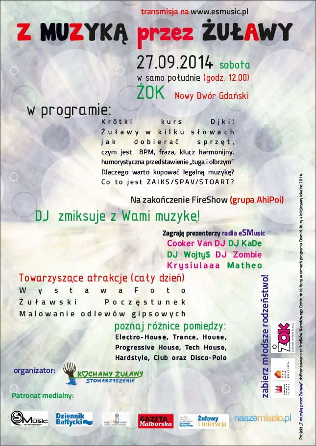 „Z muzyką przez Żuławy” – 27.09.2014 r. godzina 12.00 – Żuławski Ośrodek Kultury w Nowym Dworze Gdańskim. Więcej informacji na www.kochamyzulawy.pl