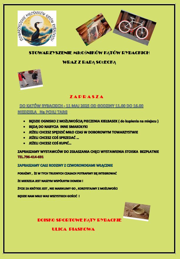 Strona główna » Aktualności » Zaproszenie do udziału w pchlim targu – 11.05.2025 Kąty Rybackie Data dodania 17.04.2025 Zaproszenie do udziału w pchlim targu – 11.05.2025 Kąty Rybackie Drukuj