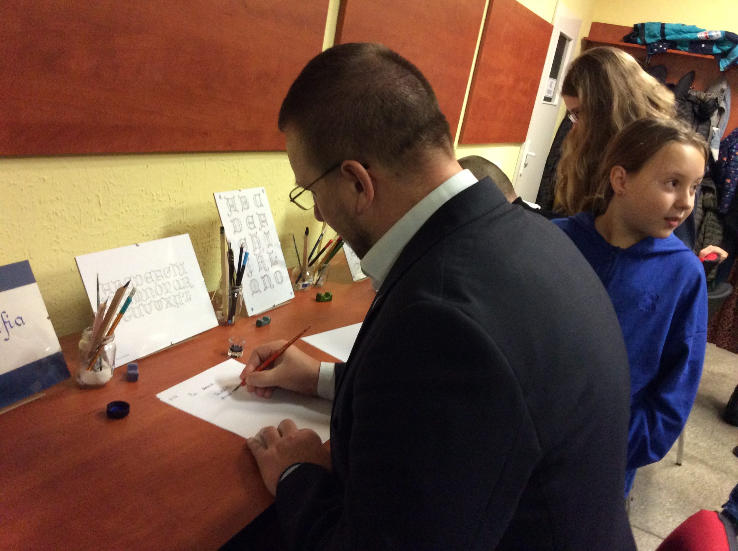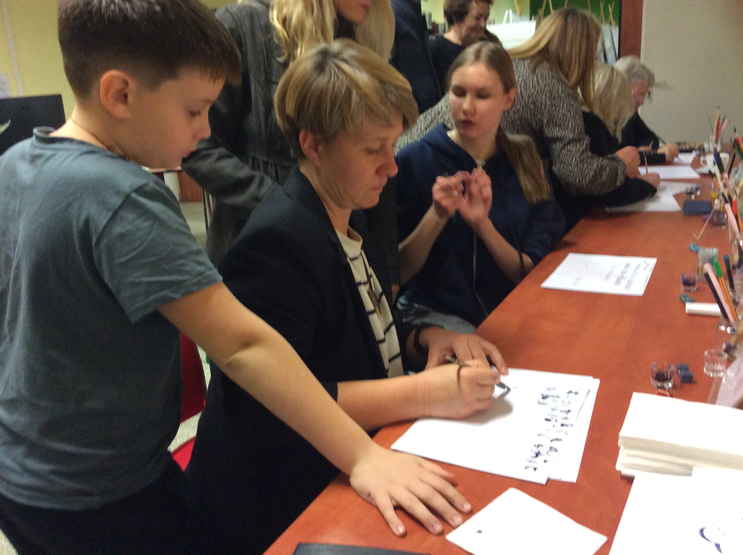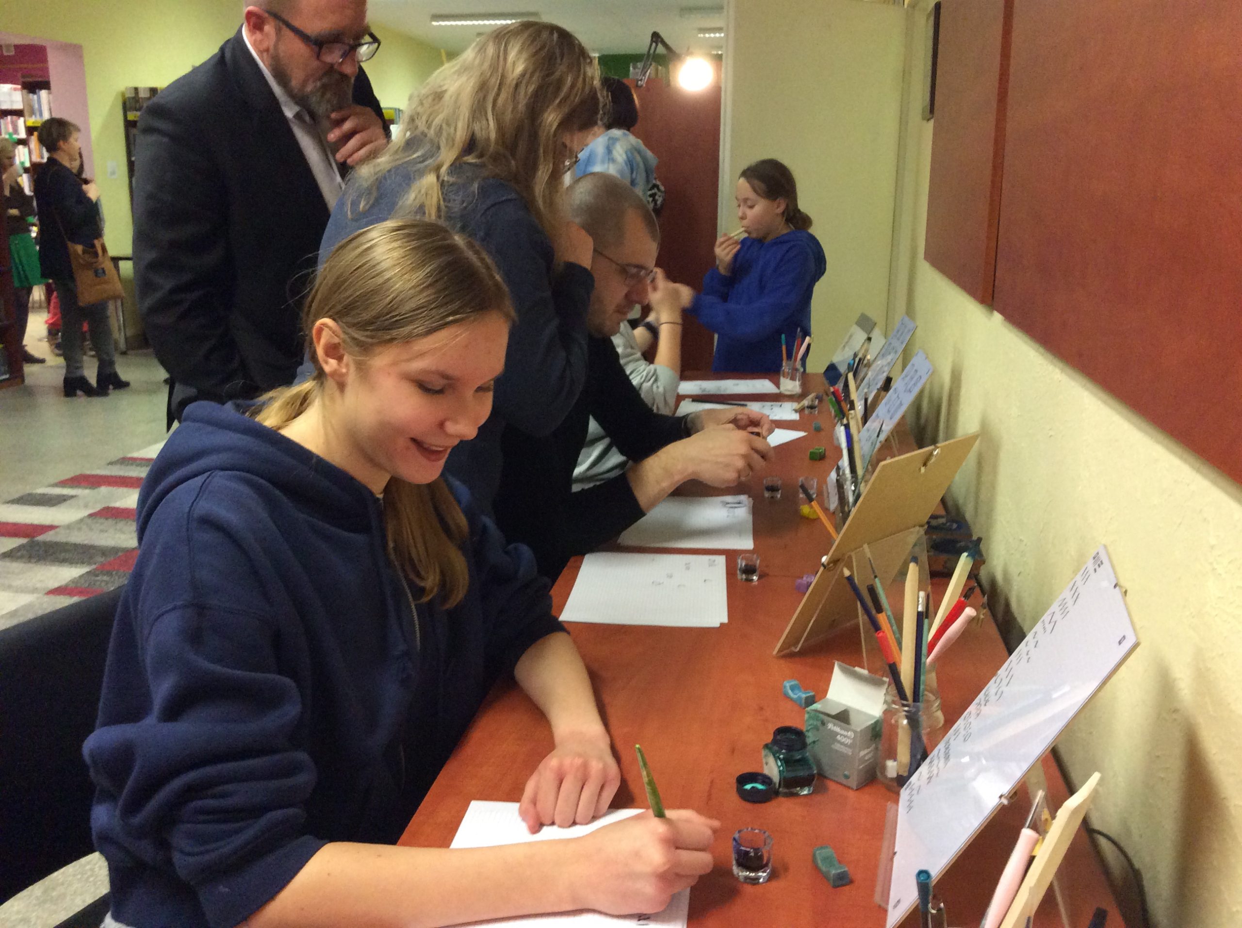 Każdy z uczestników wernisażu miał okazję zmierzyć się z trudną sztuką kaligrafii, pisząc list do św. Mikołaja i przekonać się, jak wymagająca jest ta forma pisania.
