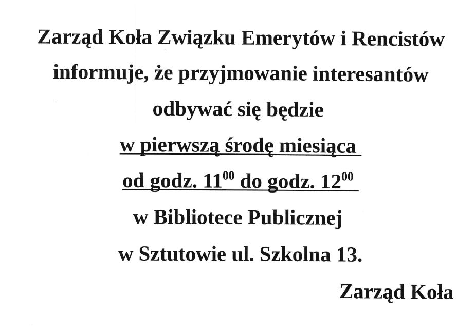 Strona główna » Aktualności » Zarząd Koła Związku Emerytów i Rencistów Data dodania 04.01.2023 Zarząd Koła Związku Emerytów i Rencistów Drukuj