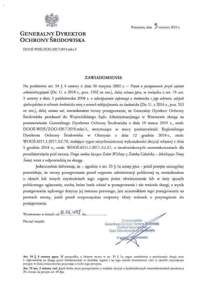 Strona główna » Aktualności » Zawiadomienie Generalnego Dyrektora Ochrony Środowiska Data dodania 10.06.2019 Zawiadomienie Generalnego Dyrektora Ochrony Środowiska Drukuj
