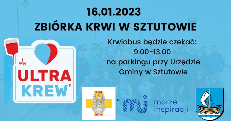 Strona główna » Aktualności » Zbiórka krwi – 16.01.2023 Data dodania 10.01.2023 Zbiórka krwi – 16.01.2023 Już 16 stycznia br. zapraszamy chętne osoby na zbiórkę krwi do Sztutowa Start godz. 9:00 Zapisy prowadzi Urząd Gminy w Sztutowie pod nr telefonu: 55 247 81 51 wew. 613 Drukuj
