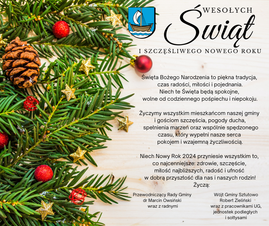 Życzymy wszystkim mieszkańcom naszej gminy i gościom szczęścia, pogody ducha, spełnienia marzeń oraz wspólnie spędzonego czasu, który wypełni nasze serca pokojem