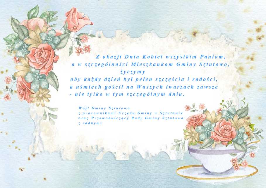 Strona główna » Aktualności » Życzenia z okazji Dnia Kobiet Data dodania 08.03.2019 Życzenia z okazji Dnia Kobiet Drukuj